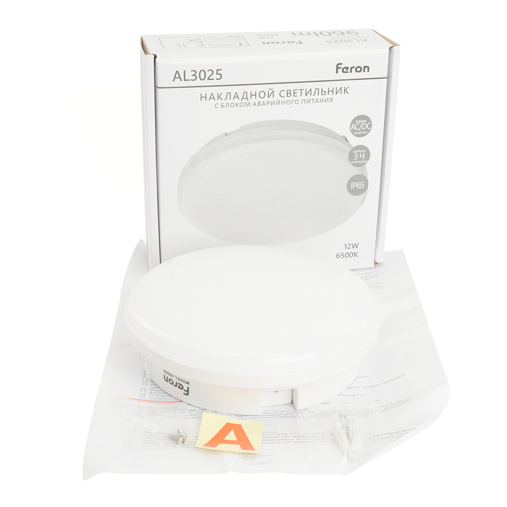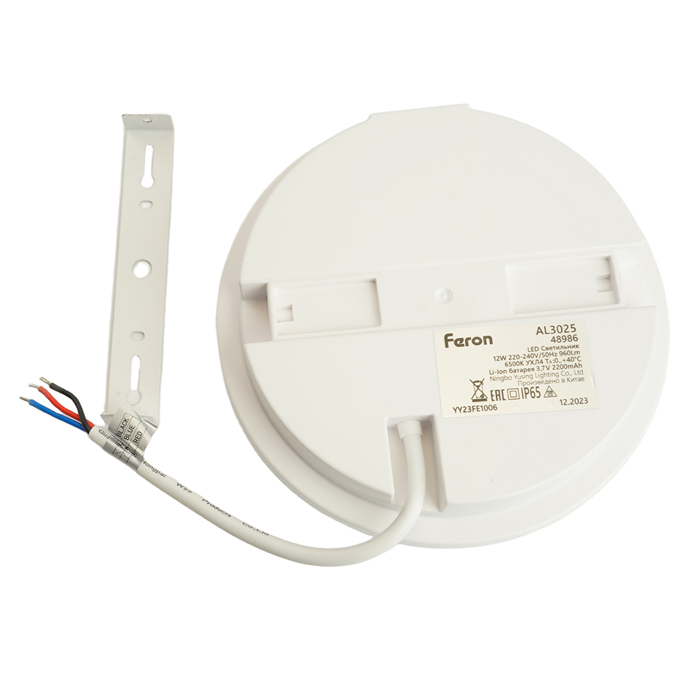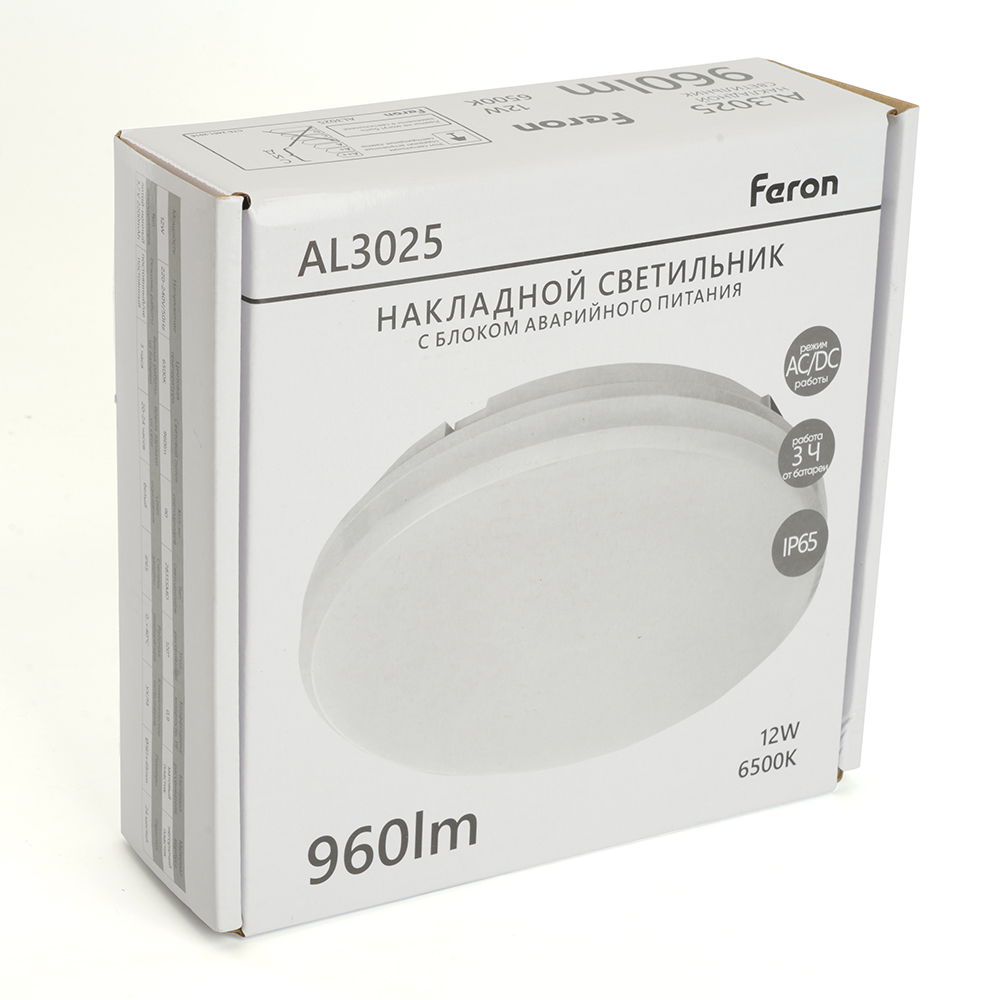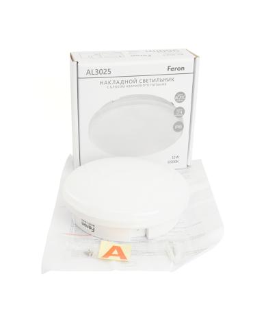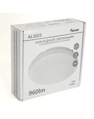 Светильник светодиодный Feron AL3025 с БАП в пластиковом корпусе 12W 6500K IP65 белый