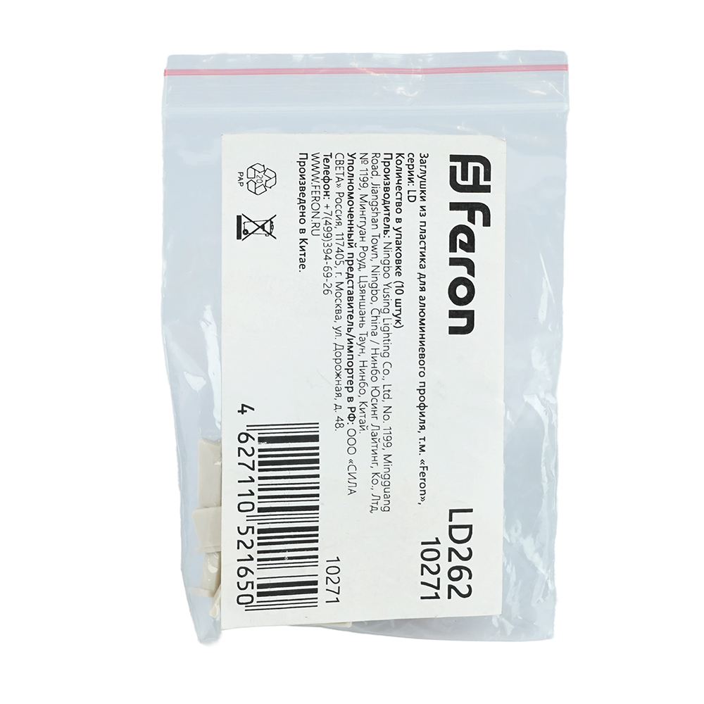 Заглушка для профиля FERON LD262, цвет серый, в комплекте 1 шт для алюминиевого профиля САВ262, 16*12*6мм