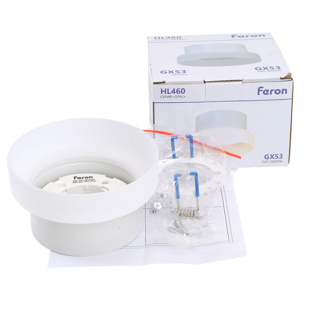 Светильник накладной под лампу, (-) FERON HL460, GX53 12W, 230V, IP20, цвет белый, корпус алюминий, акрил, 110*110*84