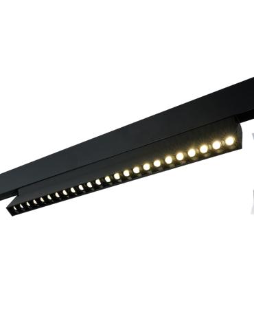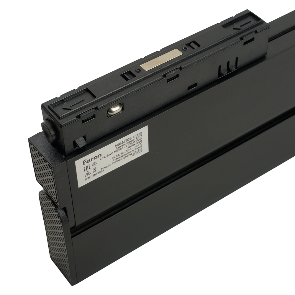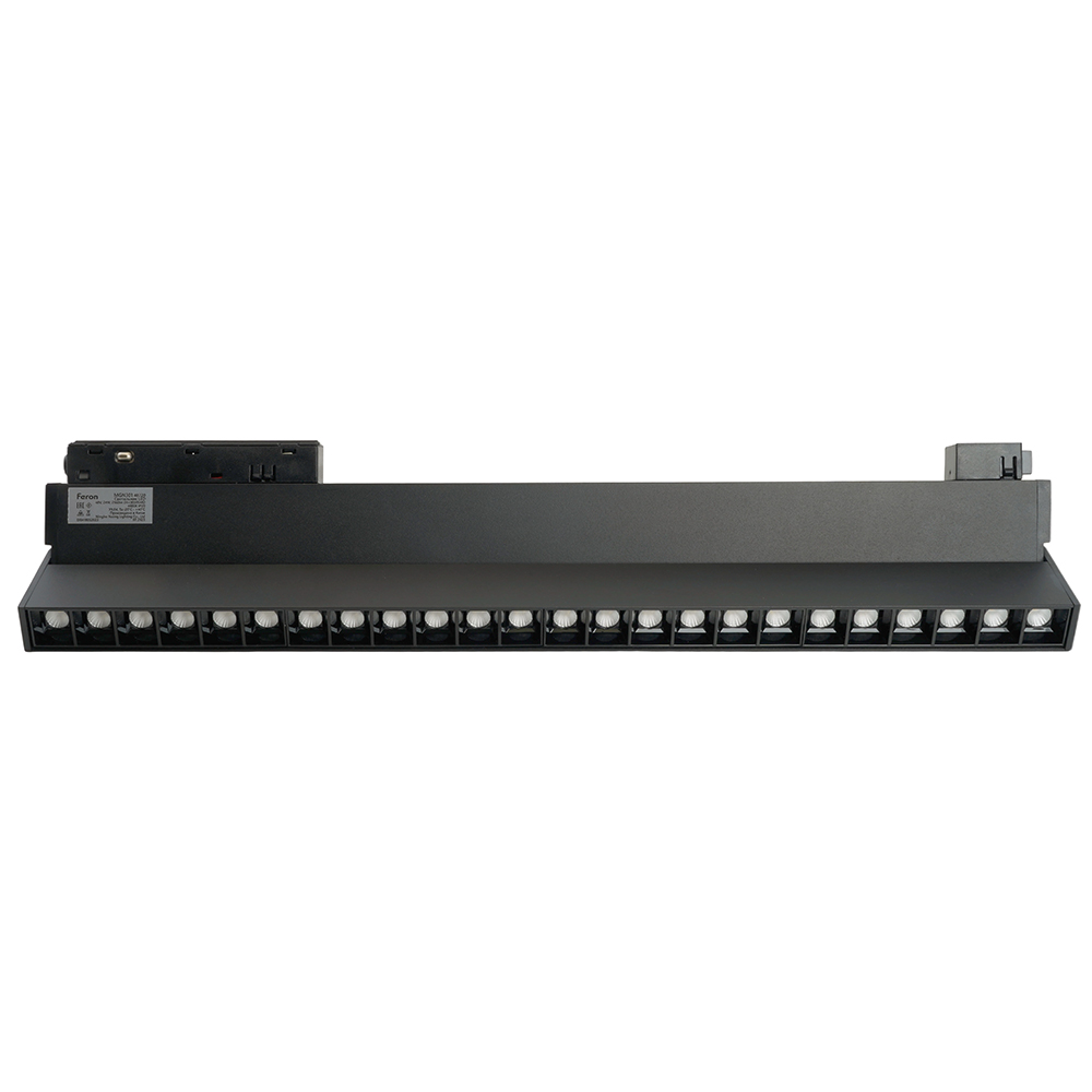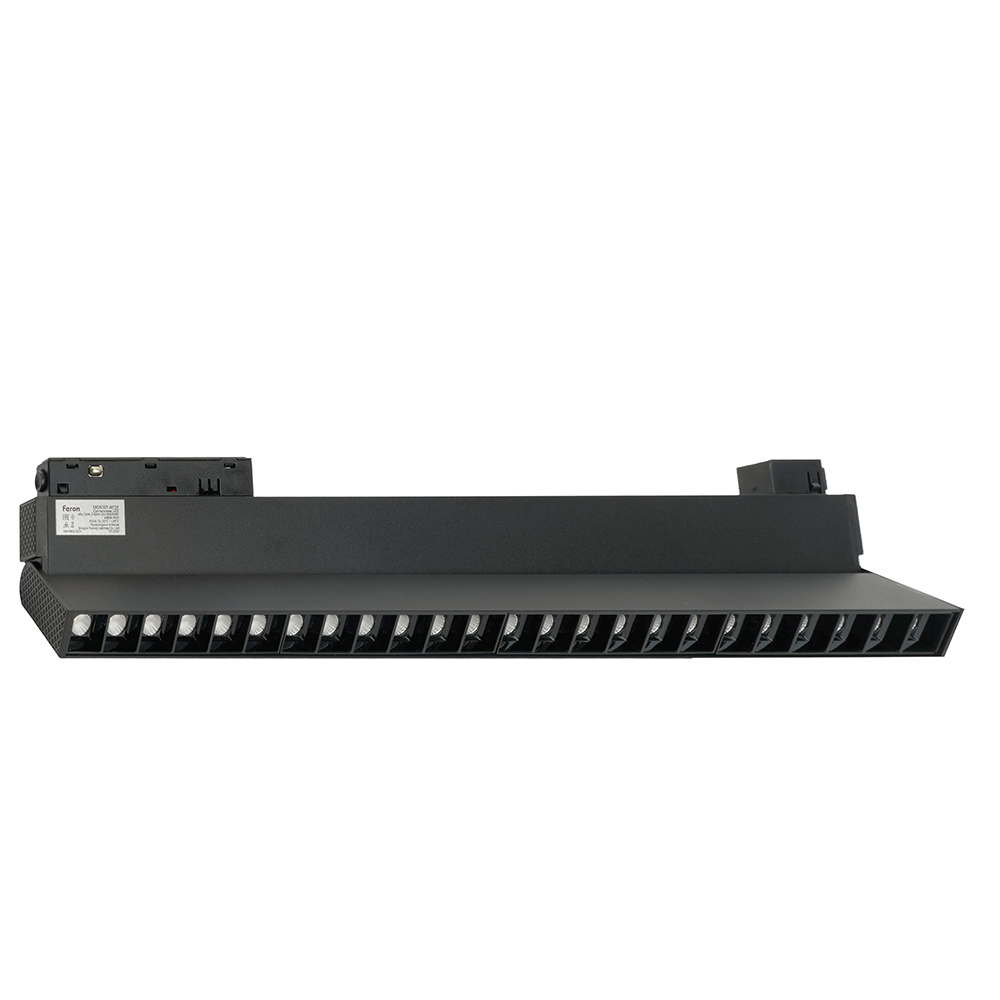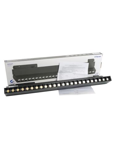 Светильник трековый на шинопровод, - (ДПО) FERON MGN301, 24W, 4000К (белый), 48V, 2160Lm, цвет черный, корпус алюминий, рассеиватель поликарбонат,/↓90°, 440*22*105 мм