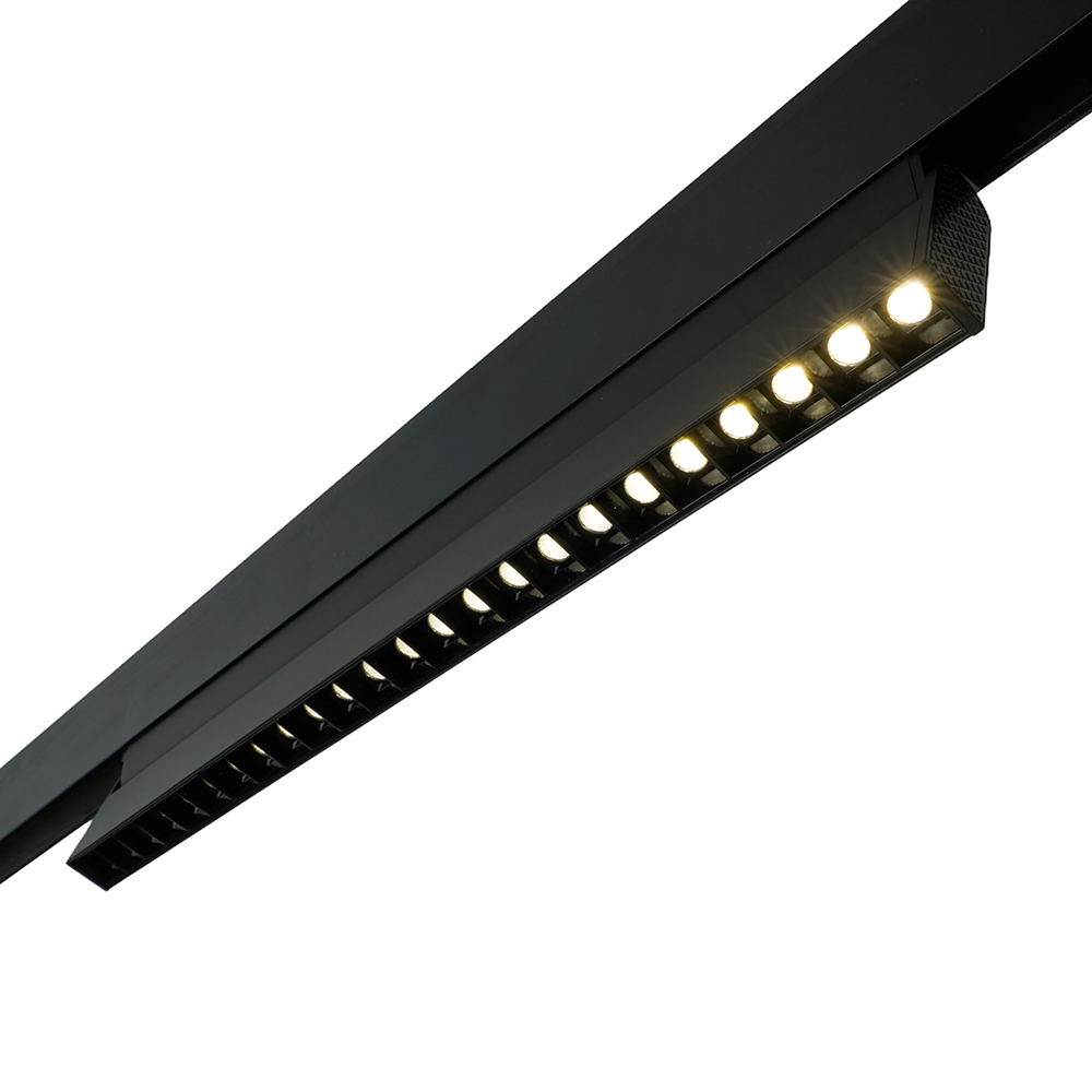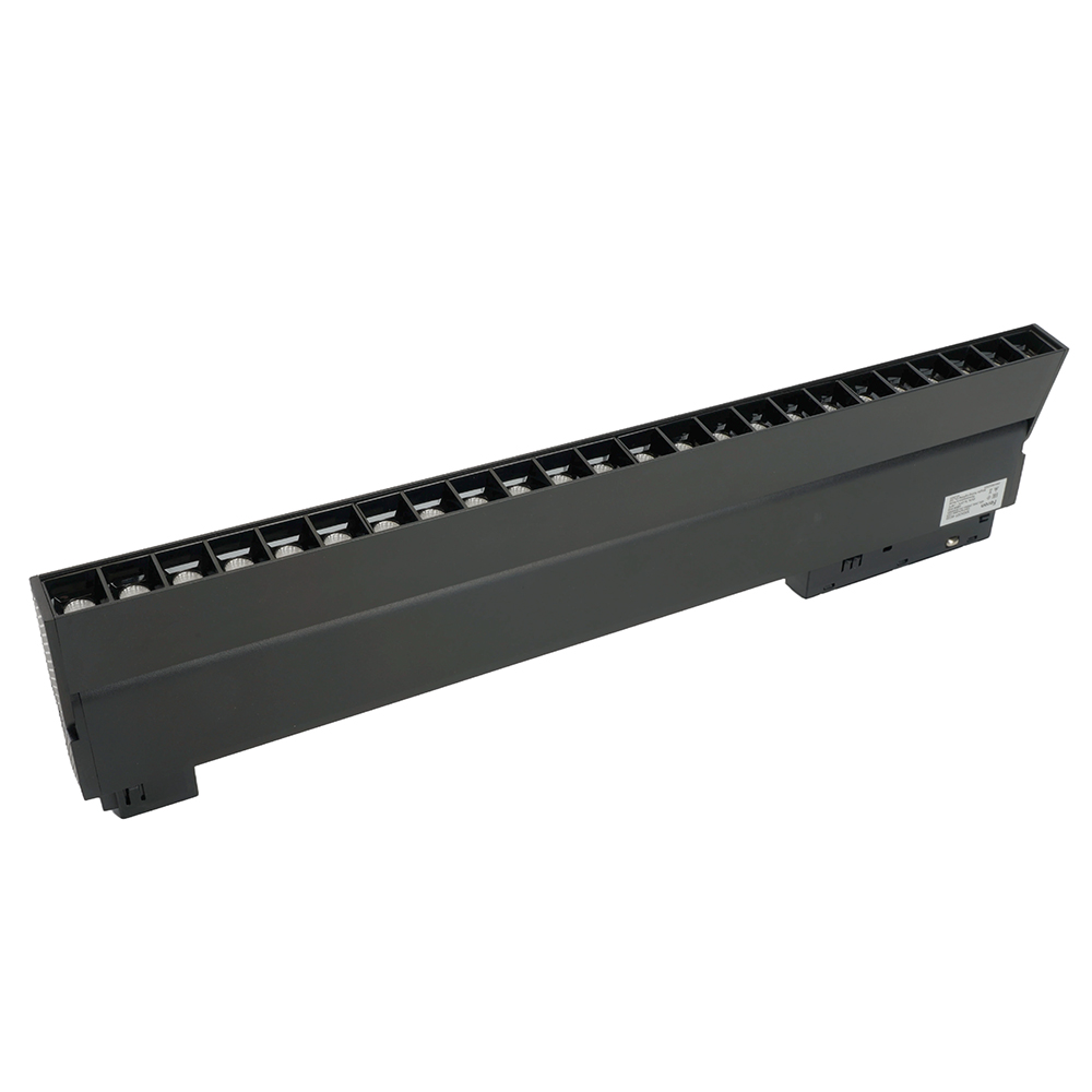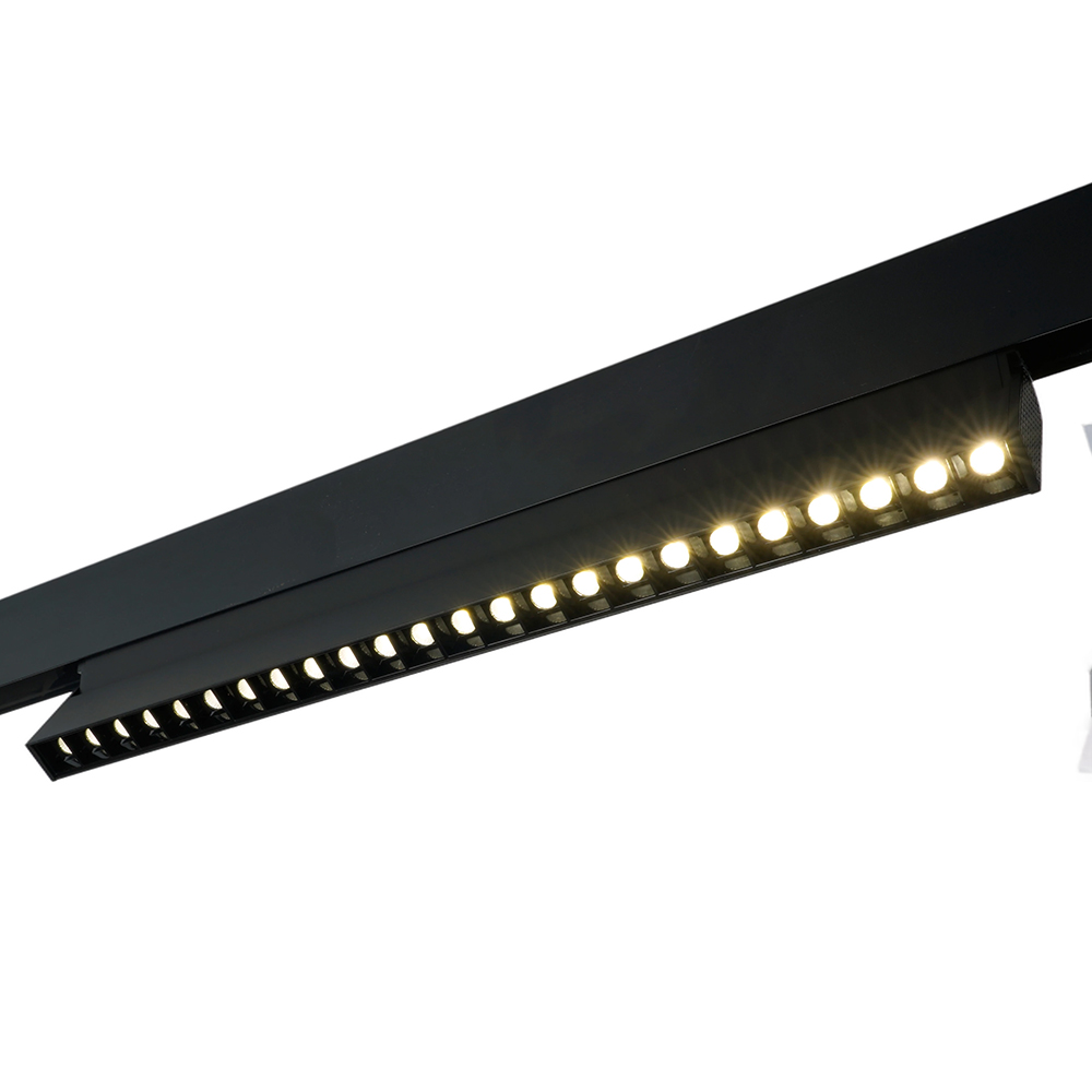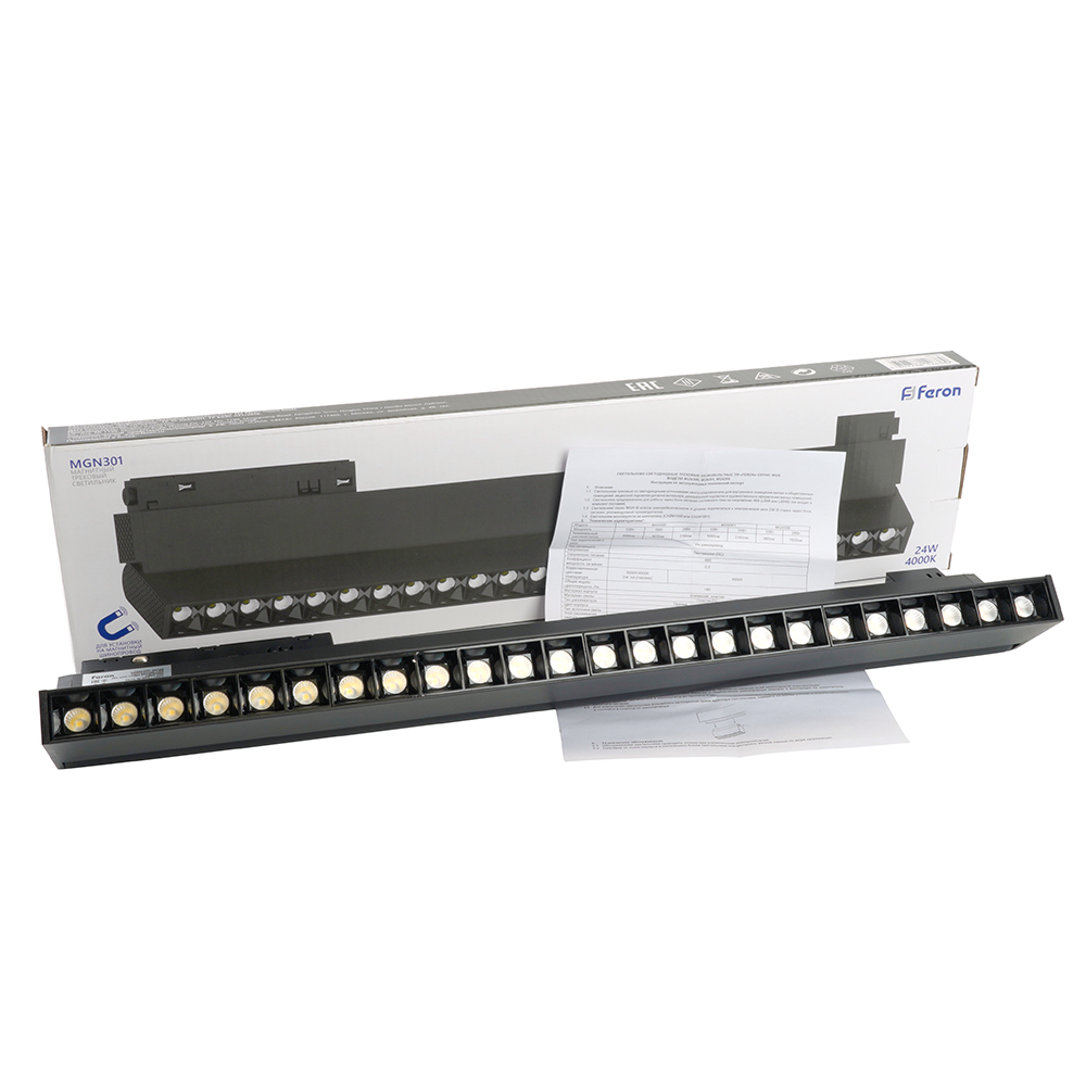 Светильник трековый на шинопровод, - (ДПО) FERON MGN301, 24W, 4000К (белый), 48V, 2160Lm, цвет черный, корпус алюминий, рассеиватель поликарбонат,/↓90°, 440*22*105 мм
