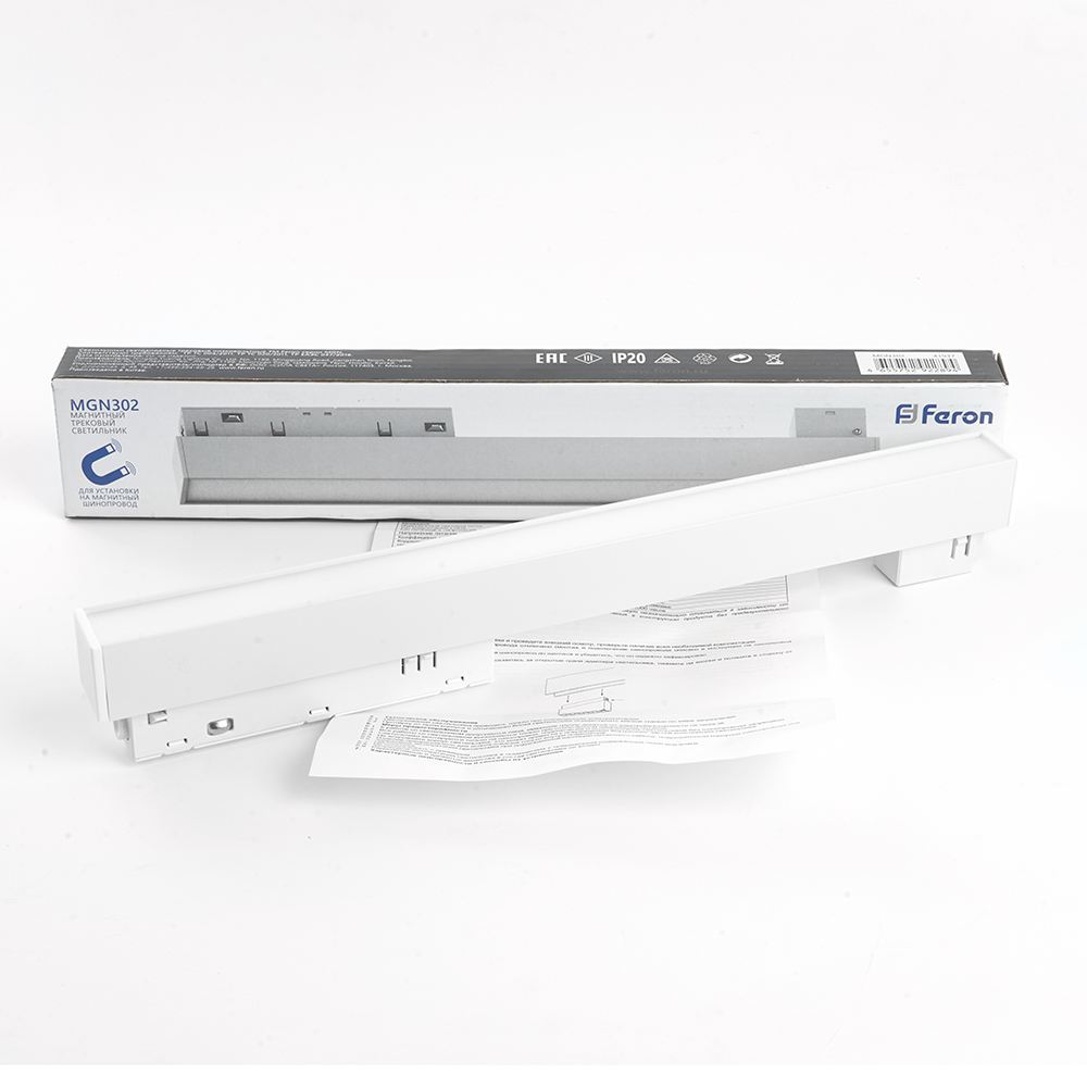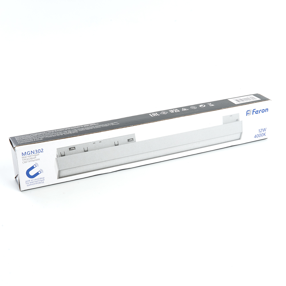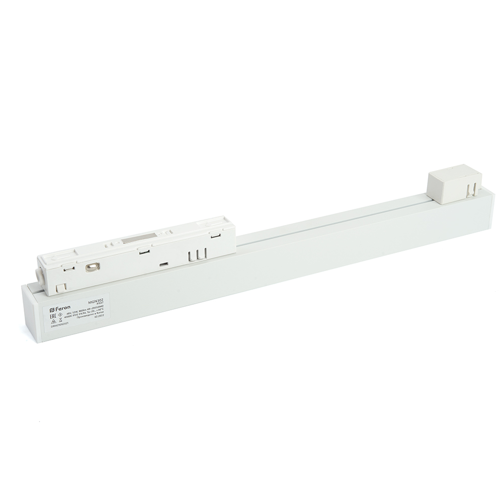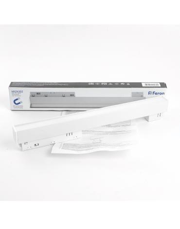 Светильник трековый на шинопровод, - (ДПО) FERON MGN302, 12W, 4000К (белый), 48V, 960Lm, цвет белый, корпус алюминий, рассеиватель поликарбонат, 300*22*43 мм