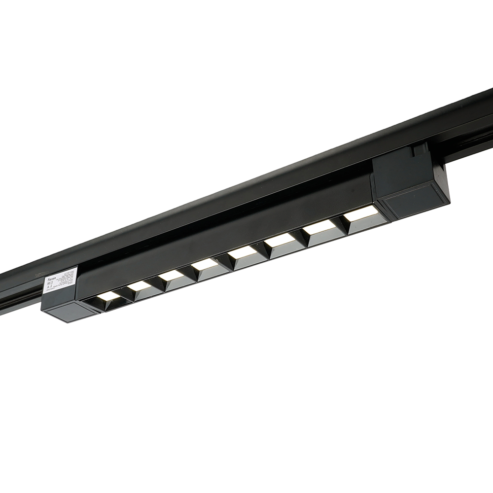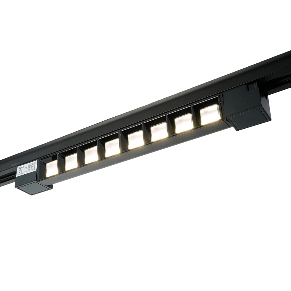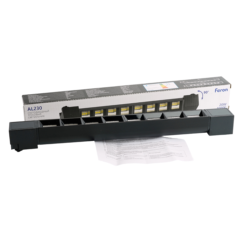 Светильник трековый на шинопровод, однофазный (ДПО) FERON AL230, 20W, 4000К (белый), 170-265V, 1800Lm, цвет черный, корпус алюминий, рассеиватель пластик, вращение →0°/↓90°, 350*33*41 мм