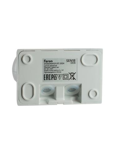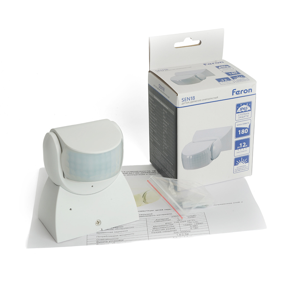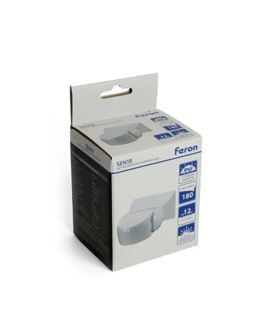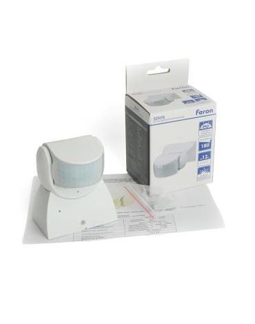 Датчик движения и освещенности FERON SEN18 инфракрасный, накладной, IP65, 230V, 1200W, расстояние обнаружения 12м, угол обнаружения 180°, с регулировкой освещенности и времени задержки и расстояния обнаружения, цвет белый, 119*80*51мм