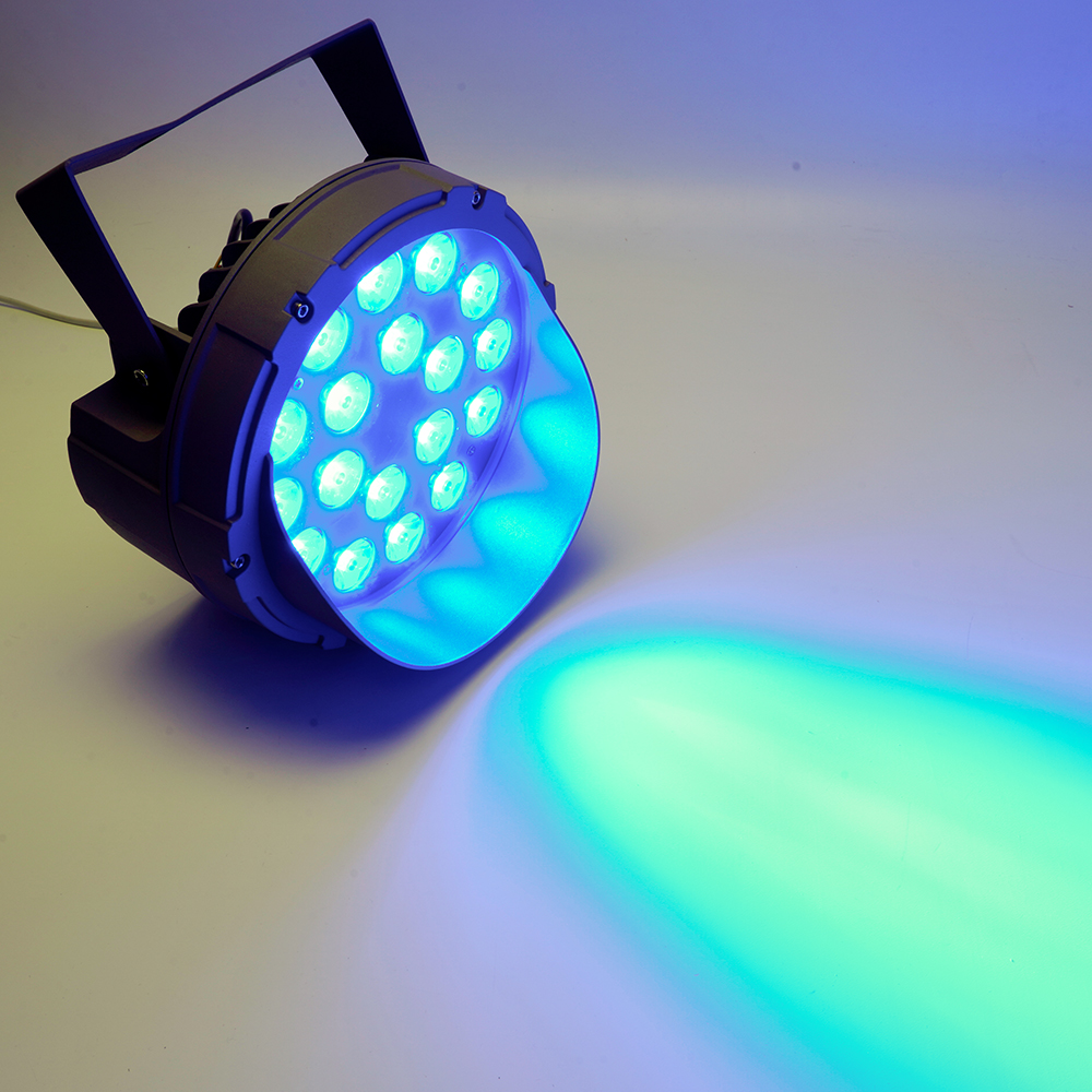 Прожектор ландшафтно-архитектурный светодиодный, на кронштейн (ДДУ) FERON LL-702, 36W, (синий), 85-265V/50Гц, IP65, угол рассеивания 5°, 18LED*SMD, класс защиты 1, раб.t -40°C...+40°C, цвет металлик, корпус алюминий, стекло, 155*225*275мм,
