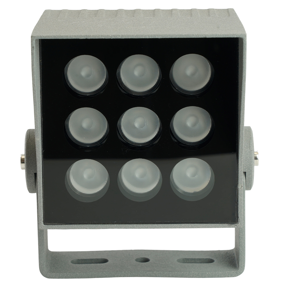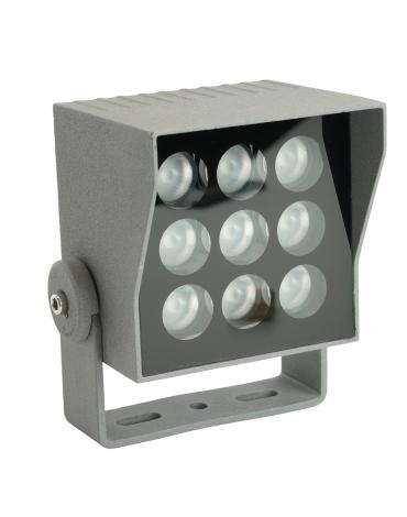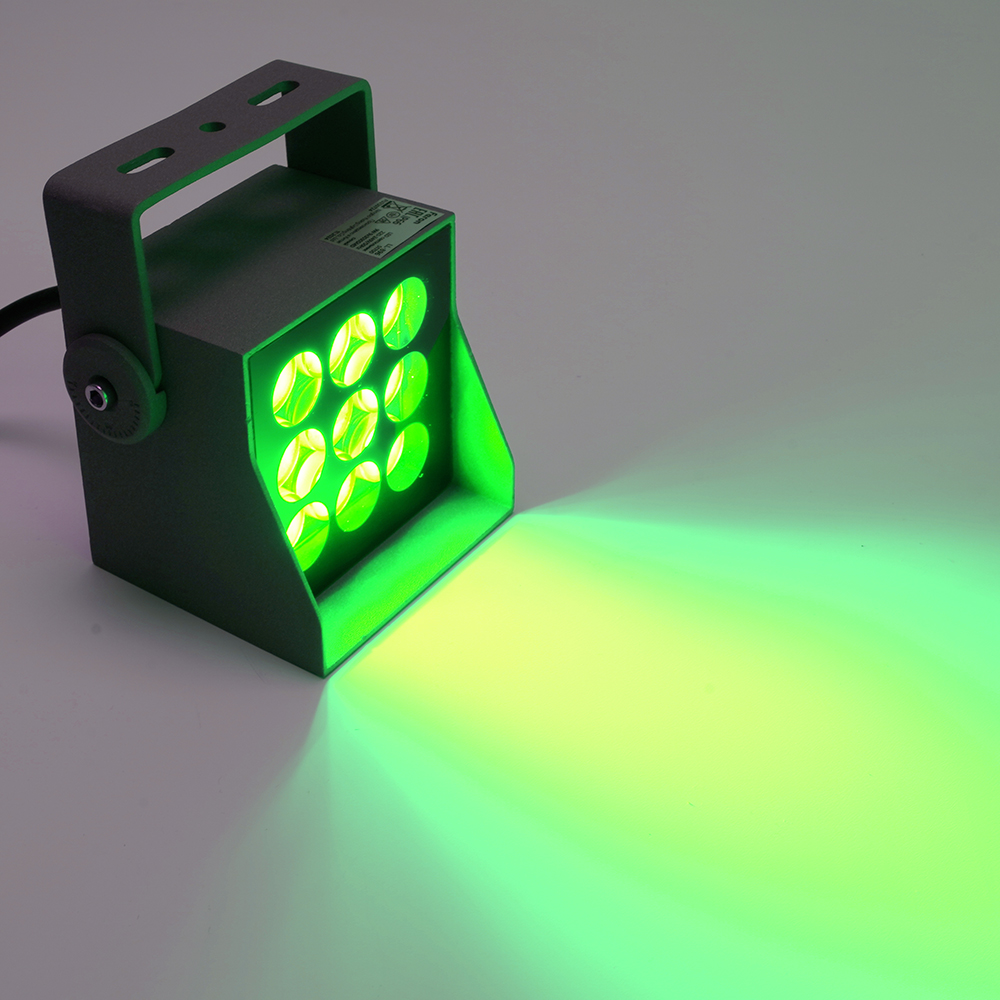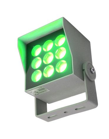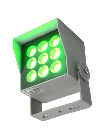 Прожектор ландшафтно-архитектурный светодиодный, на кронштейн (ДДУ) FERON LL-896, 9W, (зеленый), 220-240V/50Гц, IP66, угол рассеивания 20°, 9LED*3030SMD, класс защиты 1, раб.t -45°C - +40°C, цвет металлик, корпус алюминий, 90*90*150мм,