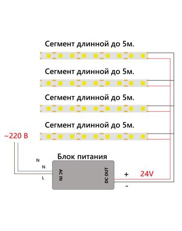 Ленту (дюралайт) можно резать только в специально помеченных местах. Расстояние между линиями разреза может варьироваться в зависимости от модели светодиодной ленты /дюралайта