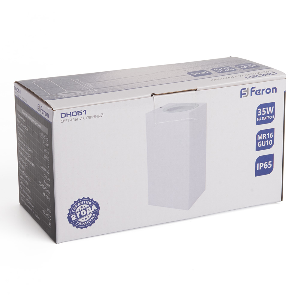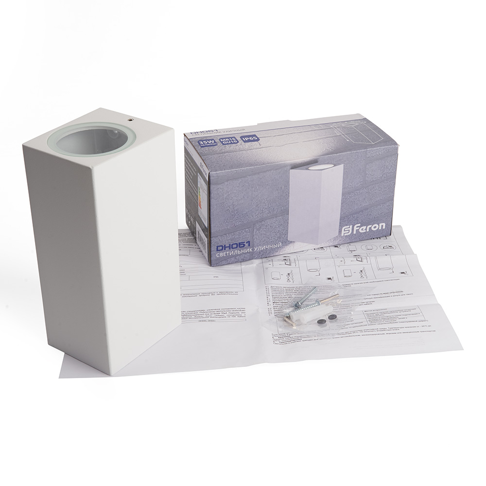 Светильник садово-парковый, серии «Бостон», (ДБУ) FERON DH051 35W, GU10, 230V, IP65, цвет белый, прямоугольник, на стену , 68*78*160мм