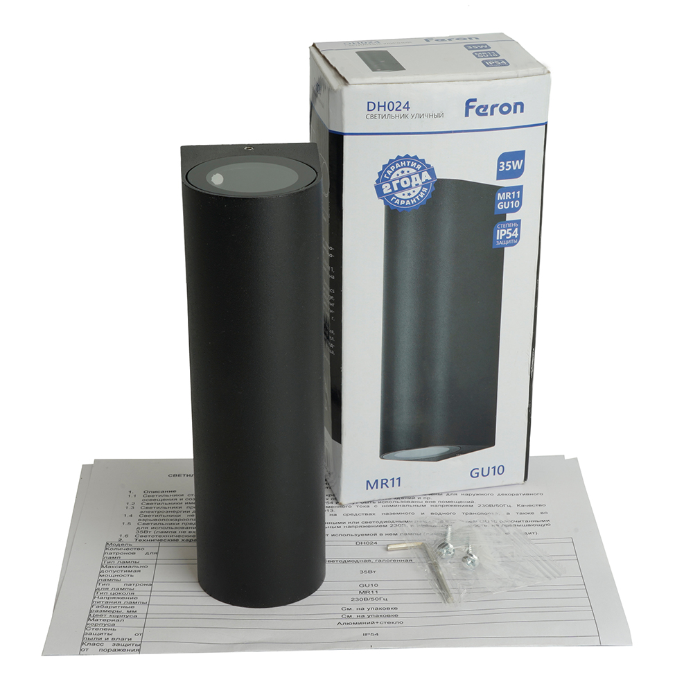 Светильник садово-парковый Feron DH024, на стену, 2*GU10 MR11 230V, черный