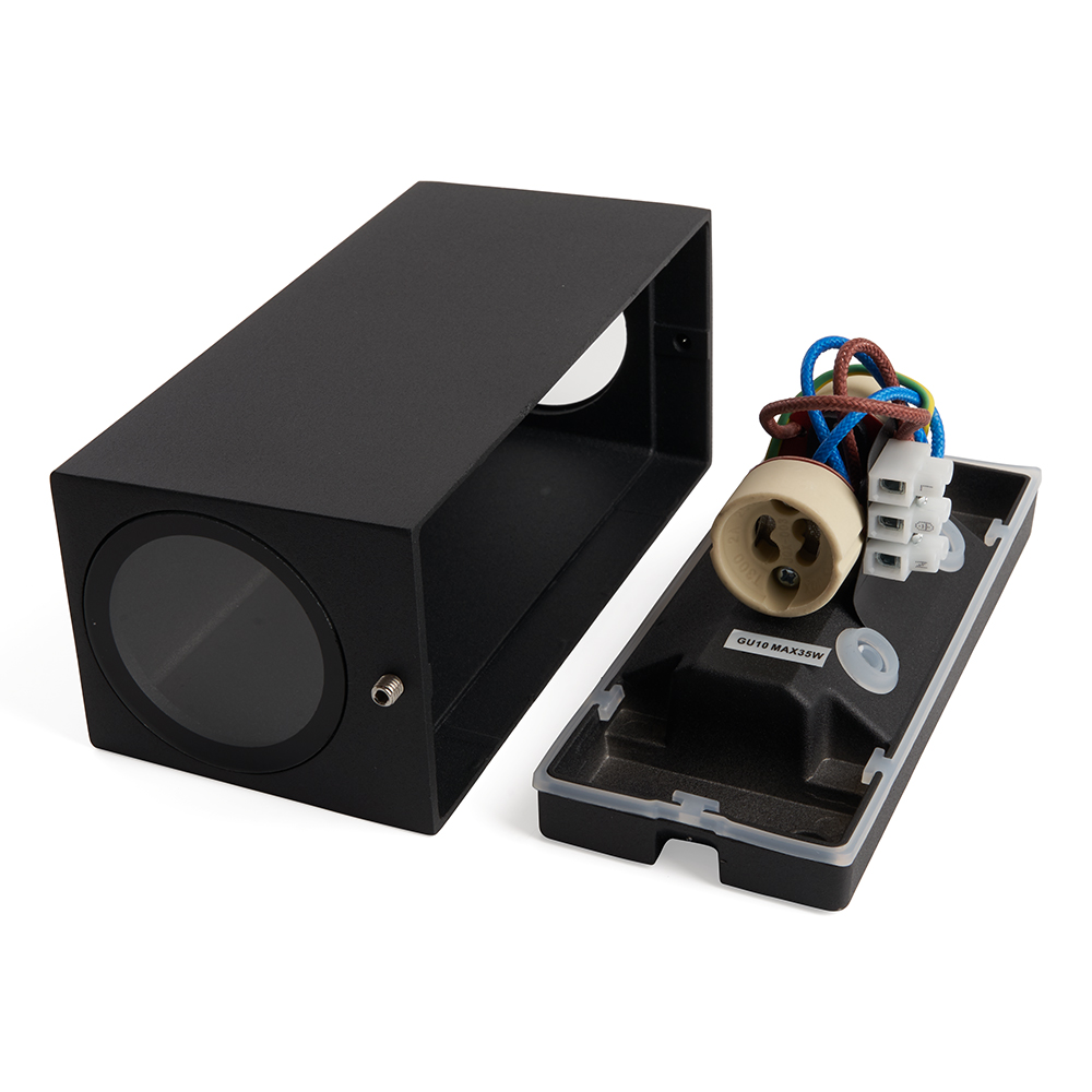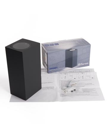 Светильник садово-парковый, серии «Бостон», (ДБУ) FERON DH051 35W, GU10, 230V, IP65, цвет черный, прямоугольник, на стену , 68*78*160мм