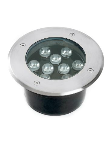 Тротуарный светильник светодиодный, встраиваемый (ДВУ) FERON SP2803, 10W, 3000К (теплый белый), AC/DC12V/50Гц, 800Lm, IP67, угол рассеивания 15°, 9LED*SMD3030, класс защиты 3, цвет металлик, корпус алюминий, сталь, 160*160*90мм, D внутр. 110мм