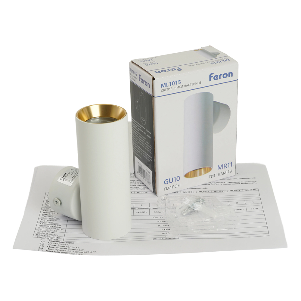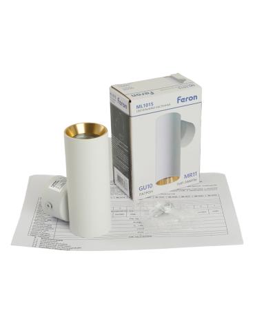 Светильник накладной под лампу, (-) FERON ML1015, GU10 35W, 230V, IP20, цвет белый+золото, корпус алюминий, 40*40*100