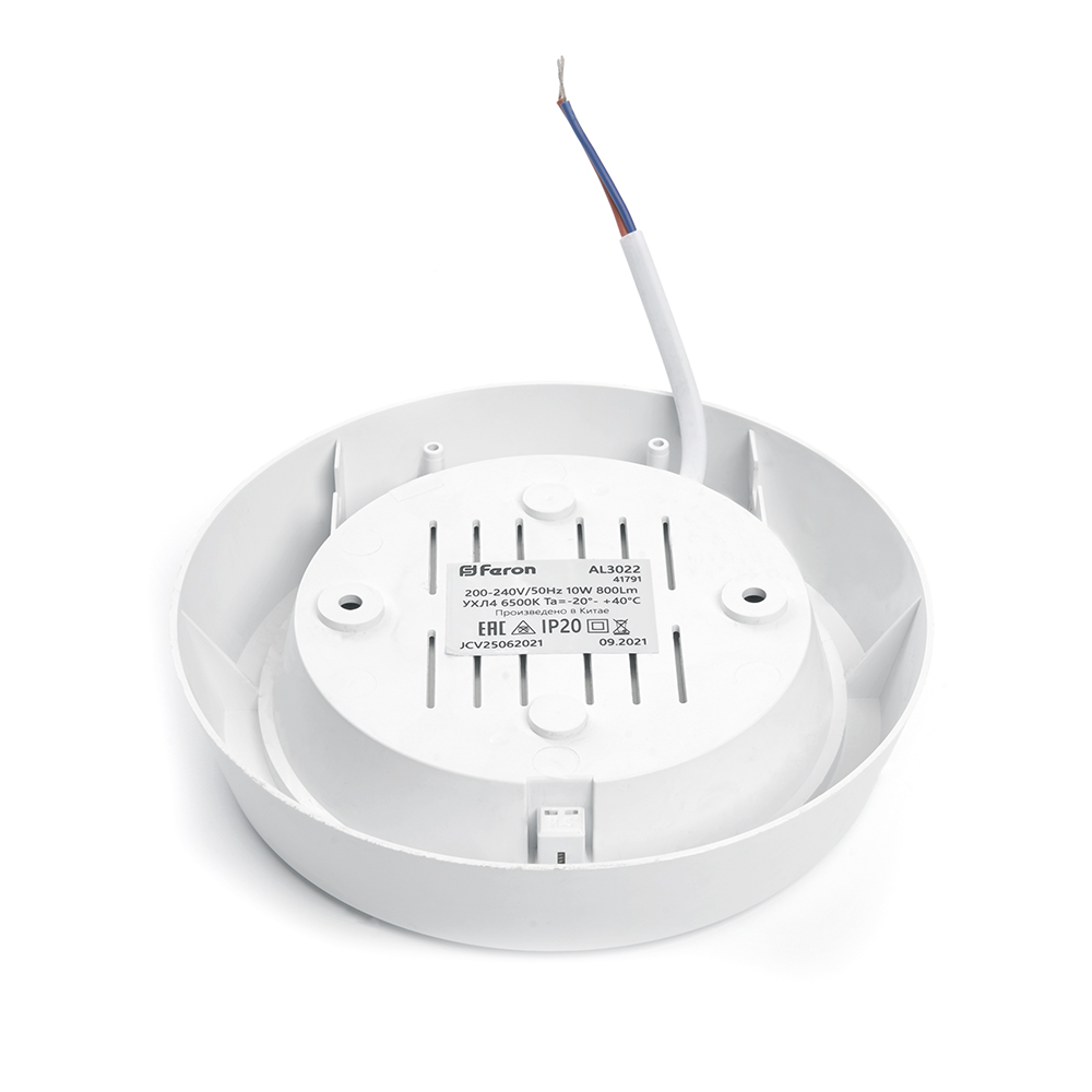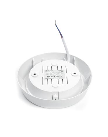 Светильник накладной светодиодный, круг (ДПБ) FERON AL3022, 10W, 4000К (белый), 200-240V, 800Lm, IP20, угол рассеивания 120°, цвет белый, корпус пластик, рассеиватель пластик, 135*135*33