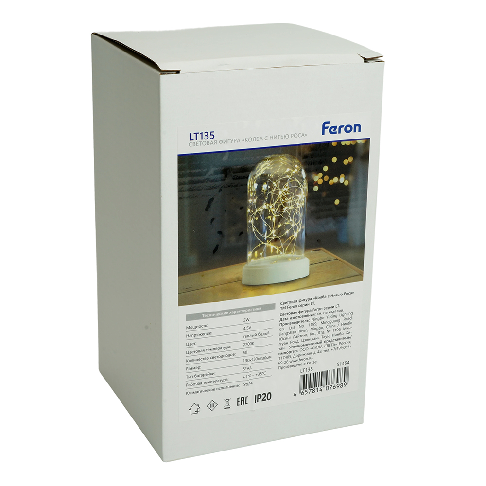 Световая фигура "объемная " FERON LT135, на батарейках 3*AA в комплект не входят, 50LED (теплый белый), 2W, IP20, материал пластик, 130*130*230мм