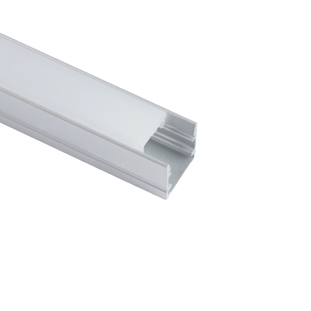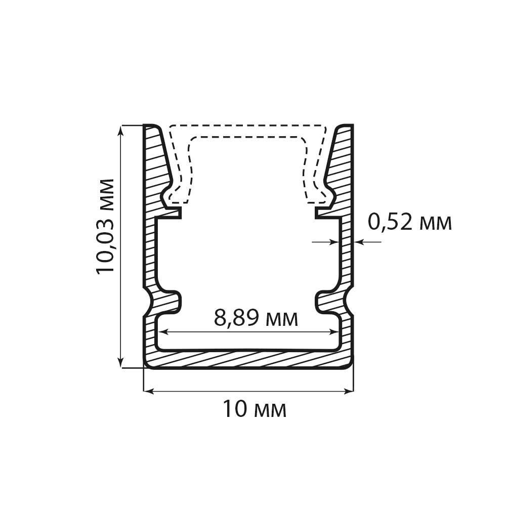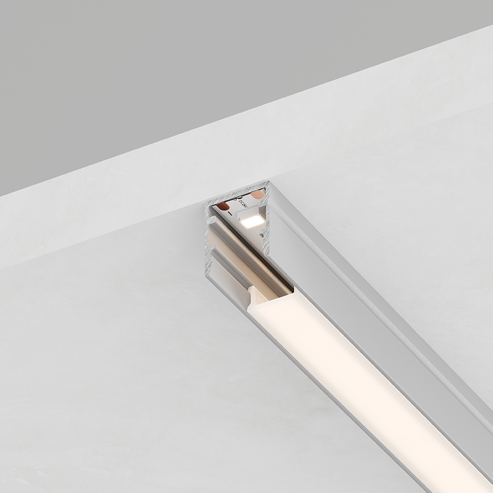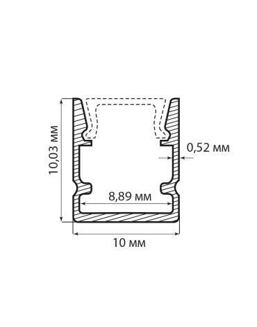 Профиль алюминиевый накладной, 10х10мм, серебро, CAB243 (в комплекте с матовым экраном, 2 заглушками, 4 крепежами) FERON