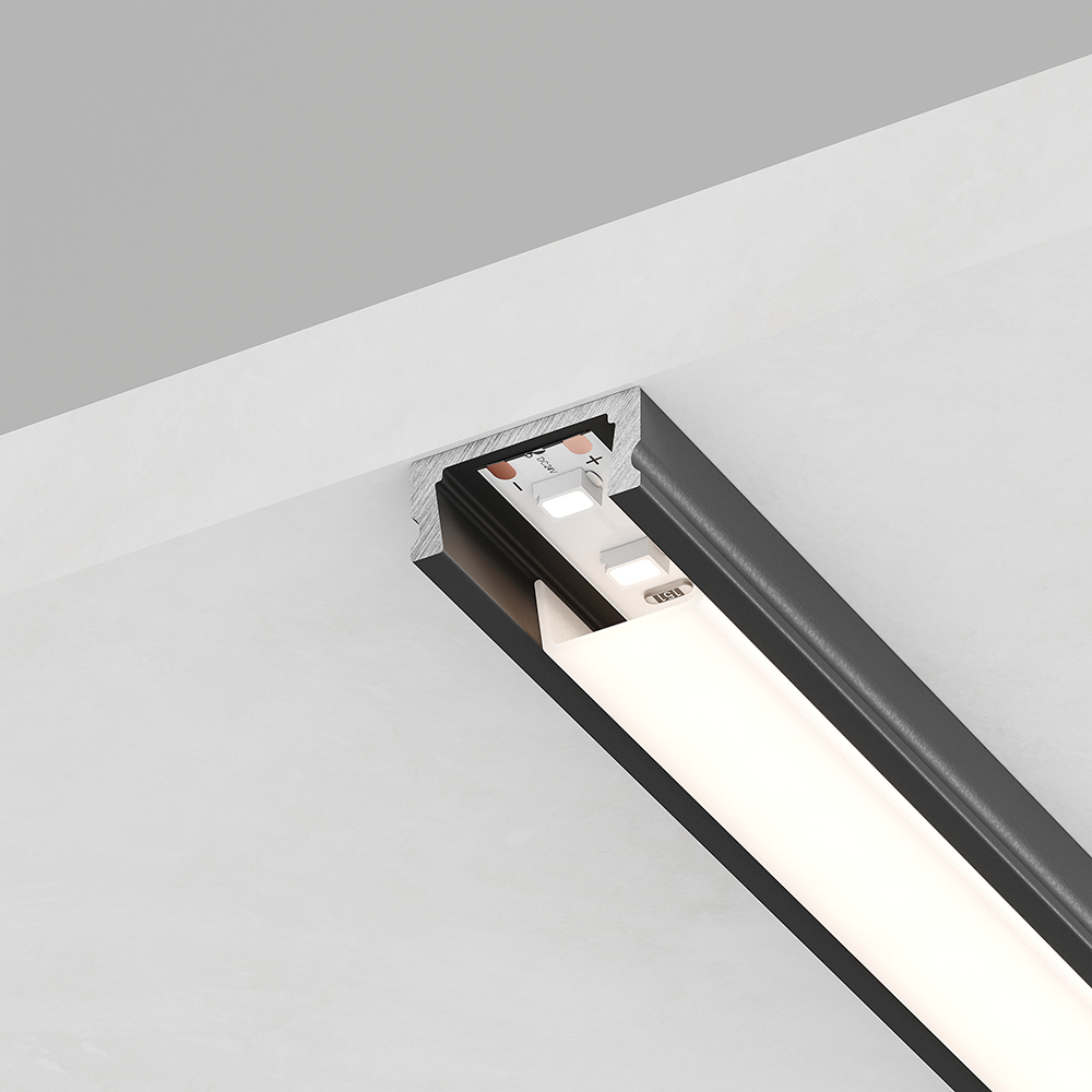 Профиль накладной для светодиодной ленты FERON CAB262 «накладной», цвет черный, в комплекте 2 заглушки + экран + 4 крепежа, 2000*16*6мм