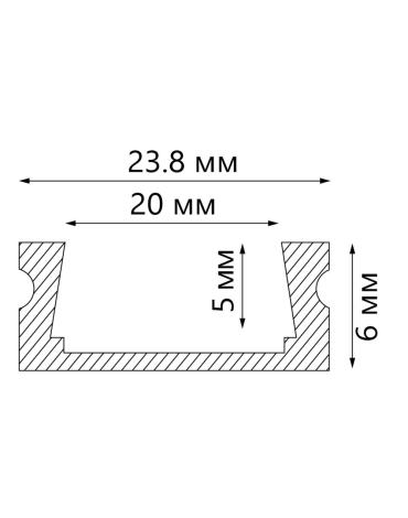 Профиль накладной для светодиодной ленты FERON CAB263 «накладной широкий», цвет серебро, в комплекте 2 заглушки + экран + 4 крепежа, 2000*24*6мм