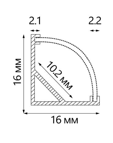Профиль накладной для светодиодной ленты FERON CAB280 «угловой круглый», цвет серебро, в комплекте 2 заглушки + экран + 4 крепежа, 2000*16*16мм