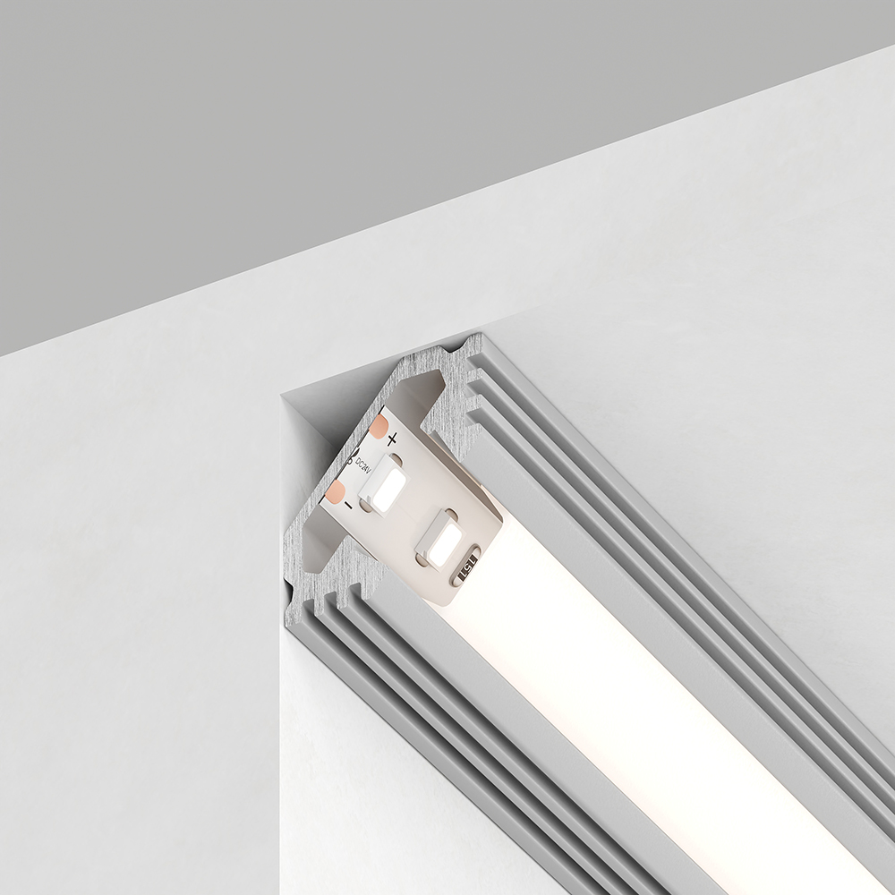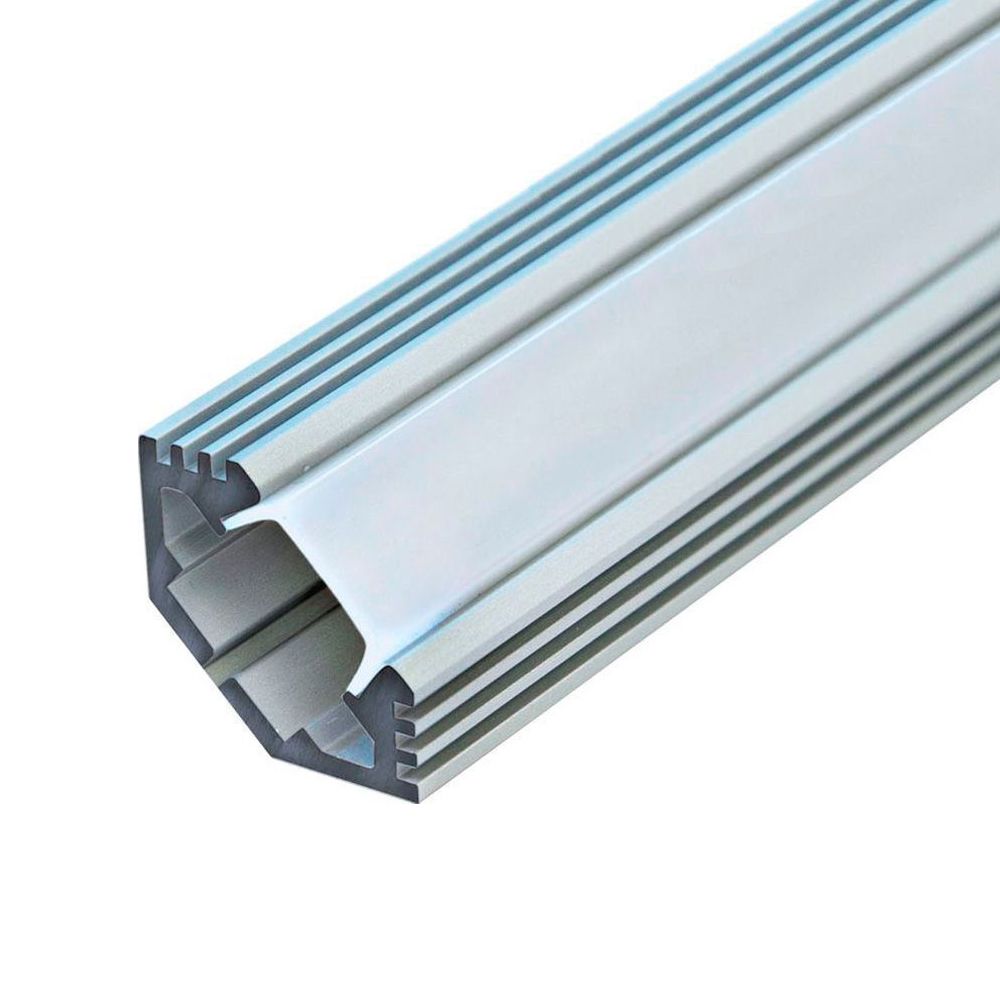 Профиль накладной для светодиодной ленты FERON CAB272 «угловой с фаской», цвет серебро, в комплекте 2 заглушки + экран + 4 крепежа, 2000*24*10мм