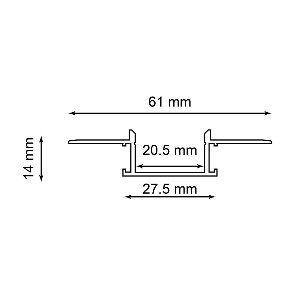 Профиль встраиваемый для светодиодной ленты FERON CAB254 «встраиваемый», цвет серебро, в комплекте 2 заглушки, экран, 2000*61*14мм