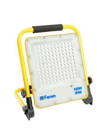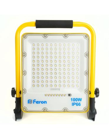Прожекторы светодиодные на штативе, переносные с ручкой, с зарядным устройством (ДО) FERON LL-952, 100W, 6400К (холодный белый), 230V/50Гц, 7500Lm, IP66, угол рассеивания 120°,*SMD5730, раб.t -40°C - +40°C, цвет жёлтый, корпус алюминий, 60*290*390 мм