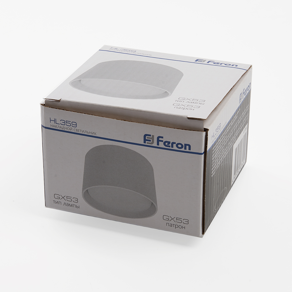 Светильник накладной под лампу, спот (ИПО) FERON HL359, GX53 12W, 230V, IP20, цвет белый, корпус алюминий, 85*85*55