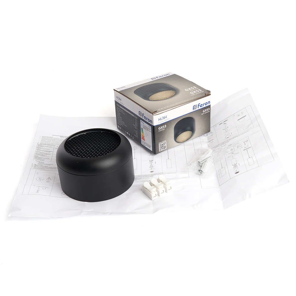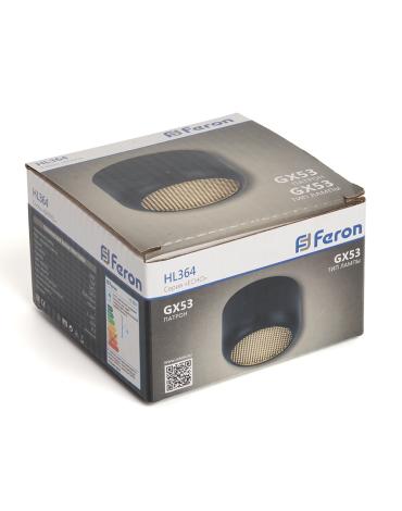 Светильник стационарный под лампу , спот (ИПО) FERON HL364, GX53 12W, 230V, IP20, цвет черный, корпус алюминий, 82*82*50