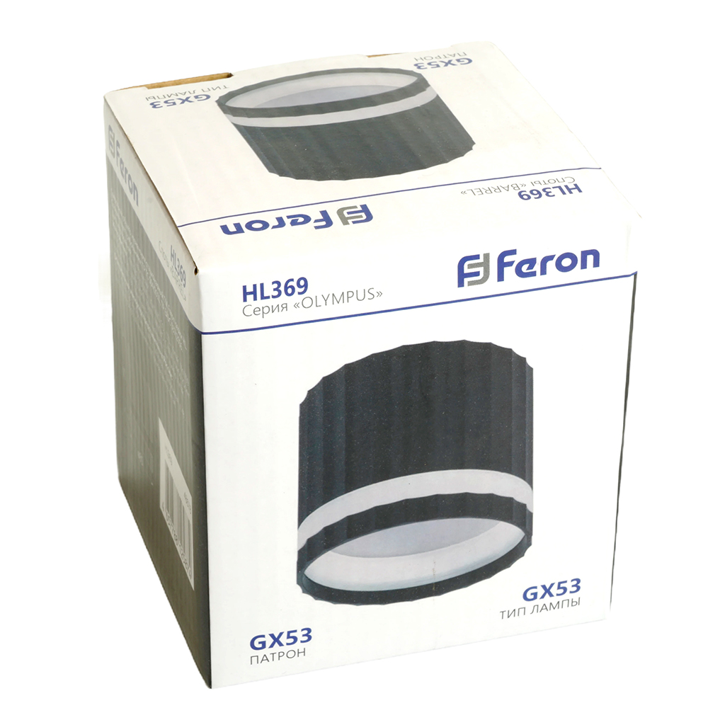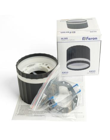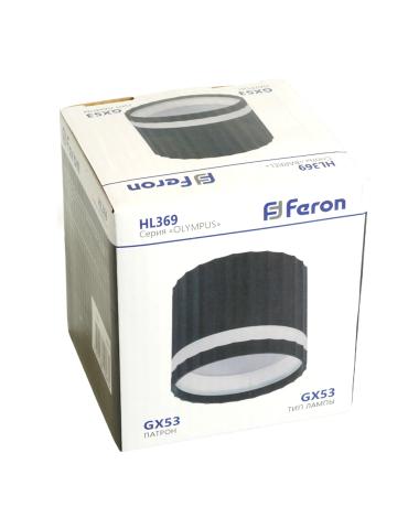 Светильник накладной под лампу, спот (-) FERON HL365, GX53 12W, 230V, IP20, цвет чёрный, корпус алюминий, акрил, 85*85*75