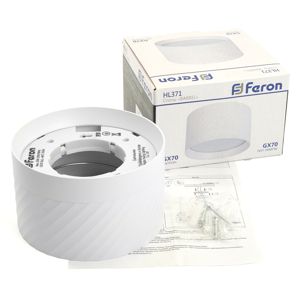 Светильник накладной под лампу, спот (ИПО) FERON HL371, GX70 25W, 230V, IP20, цвет белый, корпус алюминий, 115*115*70
