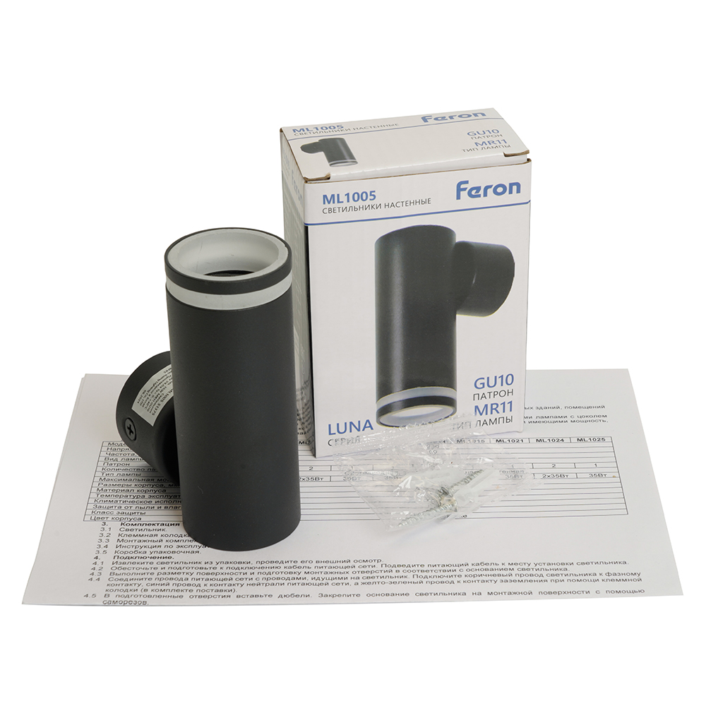 Светильник Feron ML1005 LUNA настенный под лампу GU10, черный