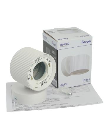 Светильник накладной под лампу, (-) FERON HL4580, GX53 12W, 230V, IP20, цвет белый, корпус алюминий, 116*80*82