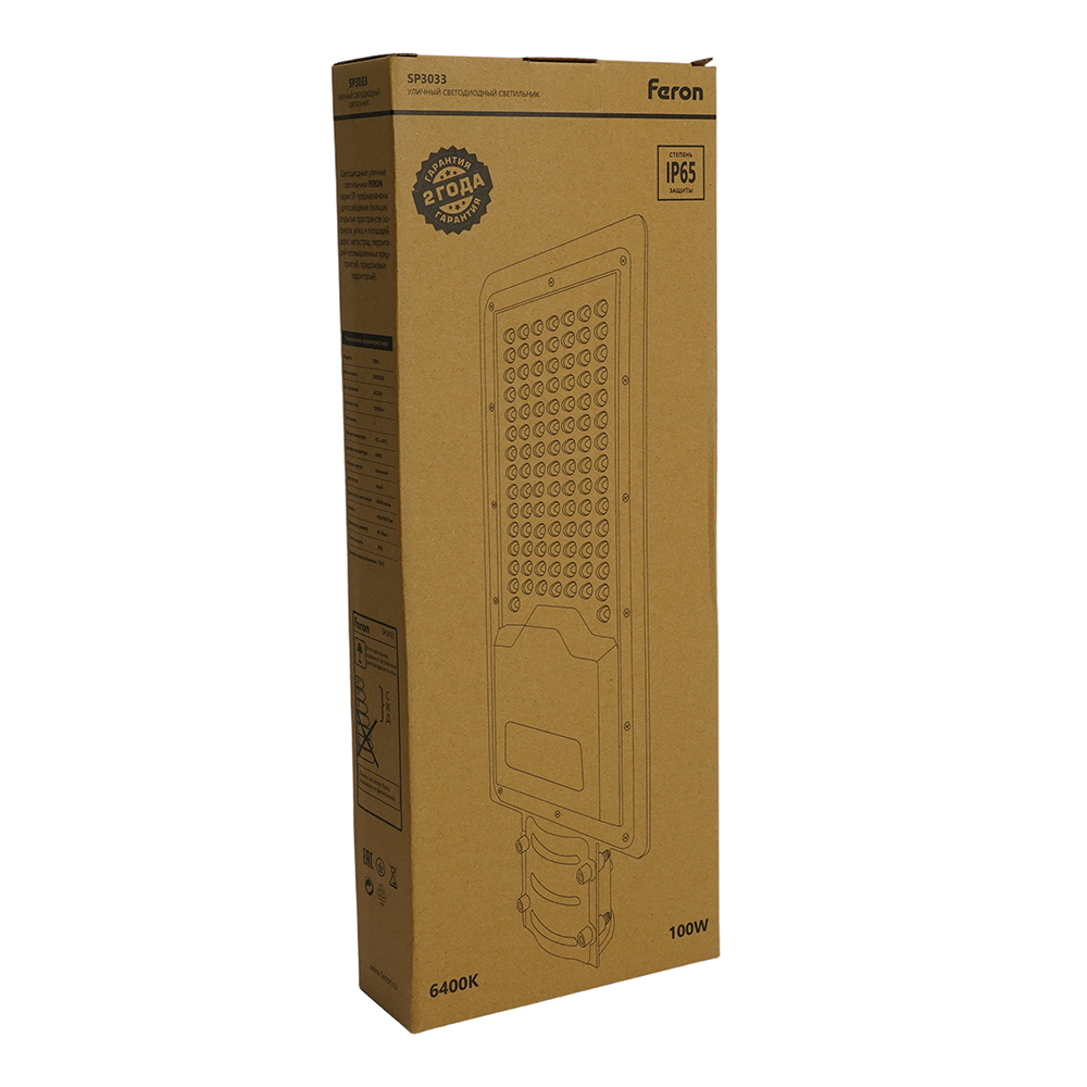 Светодиодный уличный консольный светильник Feron SP3033 100W 6400K 230V, серый