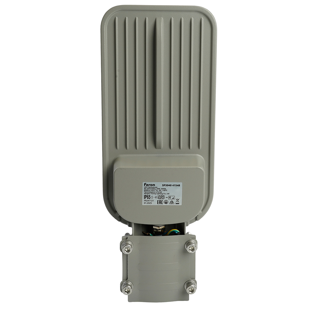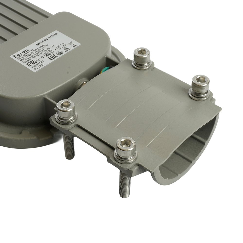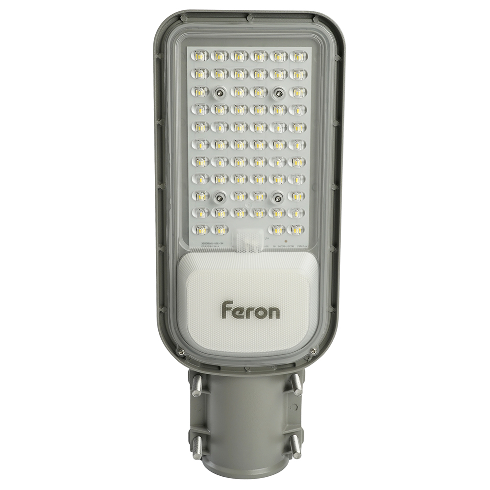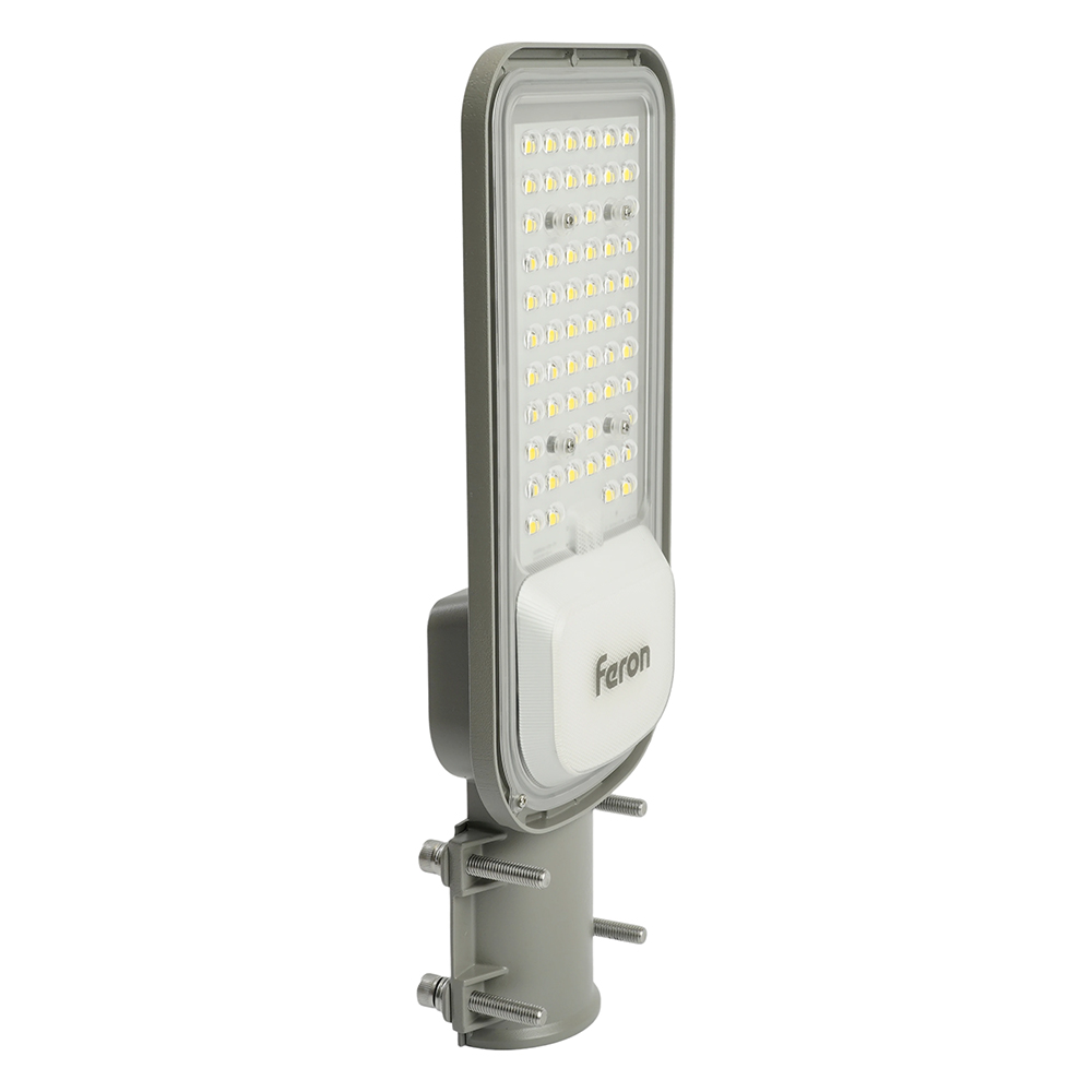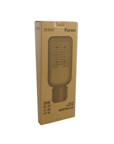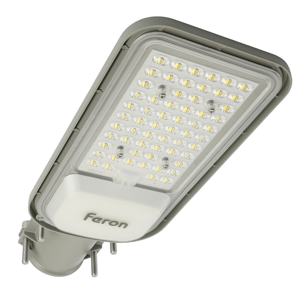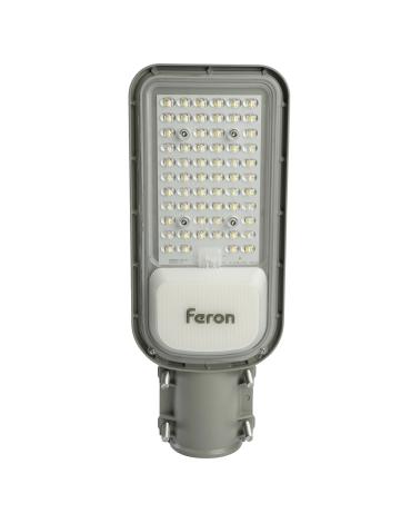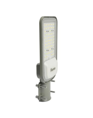 Уличный светильник консольный светодиодный, на столб (ДКУ) FERON SP3040, 50W, 5000К (дневной), 85-265V/50Гц, 6000Lm, IP65, угол рассеивания 120°, 70LED*SMD2835, класс защиты 1, раб.t -60°C - +45°C, цвет серый, корпус алюминий, 380*146*70мм,
