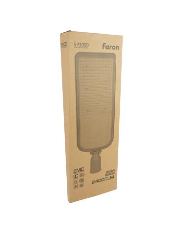Уличный светильник консольный светодиодный, на столб (ДКУ) FERON SP3050, 200W, 5000К (дневной), 85-265V/50Гц, 24000Lm, IP65, угол рассеивания 120°, 224LED*SMD2835, класс защиты 1, раб.t -60°C - +45°C, цвет серый, корпус алюминий, 647*226*74мм,