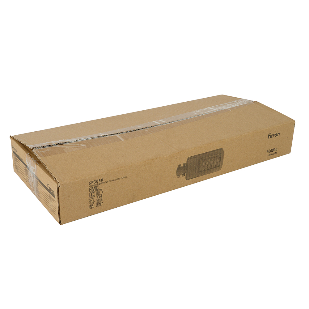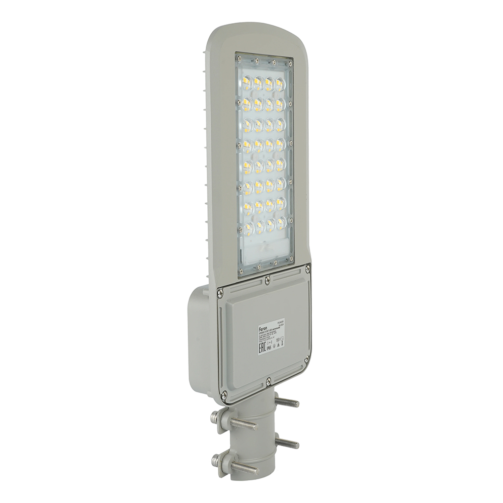 Уличный светильник консольный светодиодный, на столб (ДКУ) FERON SP3050, 80W, 4000К (белый), 85-265V/50Гц, 9600Lm, IP65, угол рассеивания 120°, 148LED*SMD2835, класс защиты 1, раб.t -60°C - +45°C, цвет серый, корпус алюминий, 530*265*65мм,