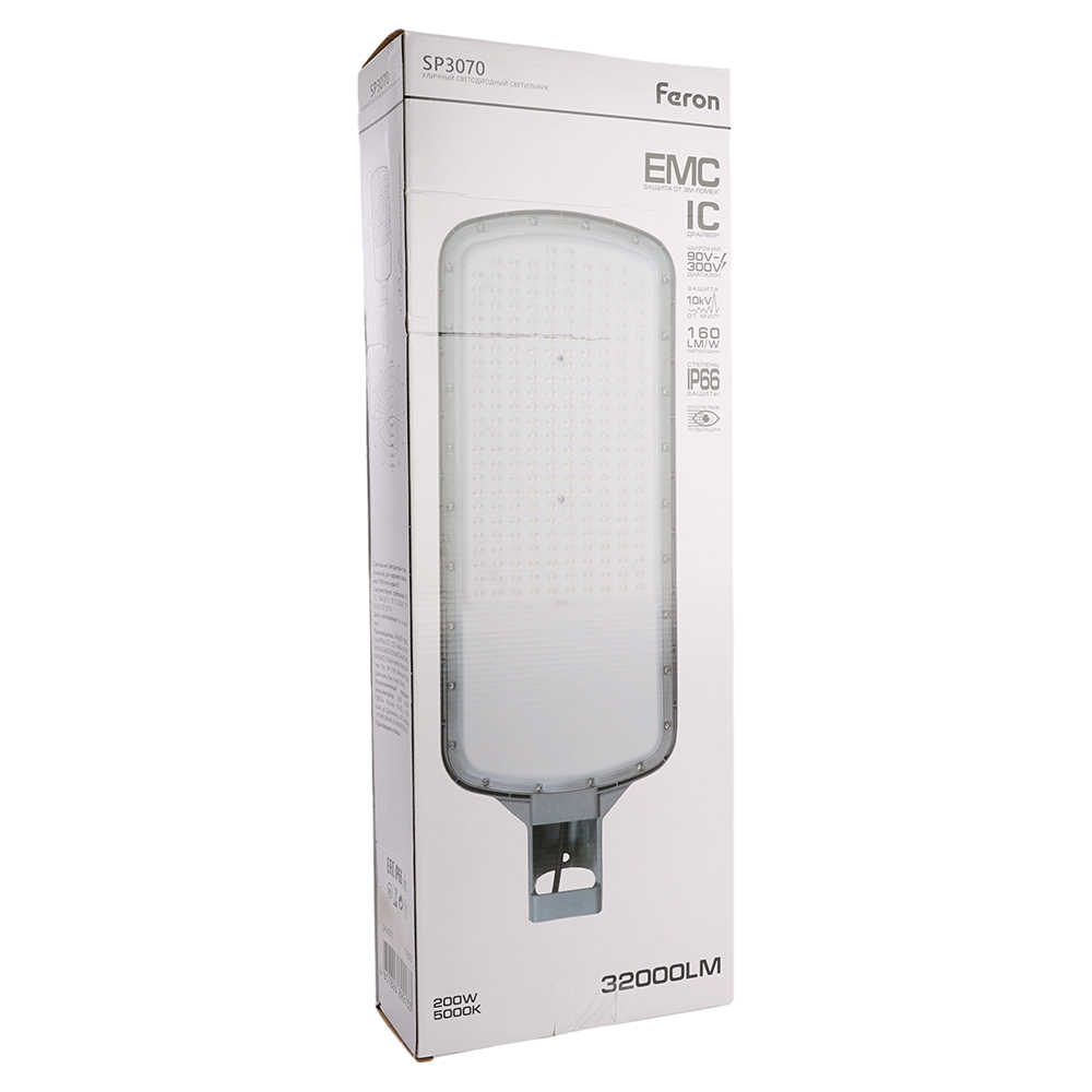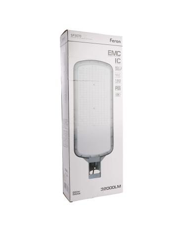 Уличный светильник консольный светодиодный, на столб (ДКУ) FERON SP3070 , 200W, 5000К (дневной), 90-300V/50Гц, 32000Lm, IP66, угол рассеивания 120°, 240LED*SMD3030, класс защиты 1, раб.t -55°..+50°С, цвет серый, корпус алюминий, 673*250*75мм,