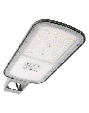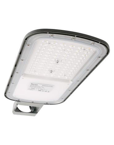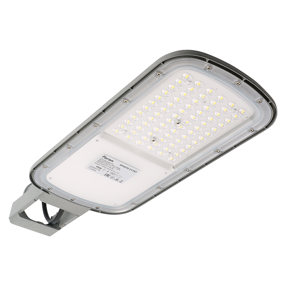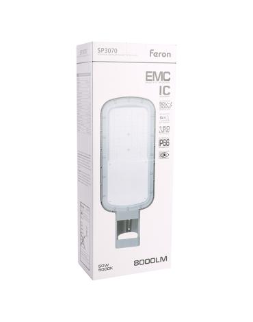 Уличный светильник консольный светодиодный, на столб (ДКУ) FERON SP3070, 50W, 5000К (дневной), 90-300V/50Гц, 8000Lm, IP66, угол рассеивания 120°, 72LED*SMD3030, класс защиты 1, раб.t -55°..+50°С, цвет серый, корпус алюминий, 433*170*75мм,