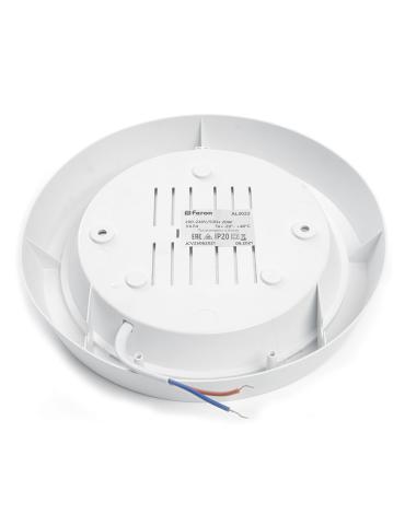 Светильник накладной светодиодный, круг (ДПБ) FERON AL3022, 20W, 6500К (дневной), 200-240V, 1600Lm, IP20, угол рассеивания 120°, цвет белый, корпус пластик, рассеиватель пластик, 180*180*35