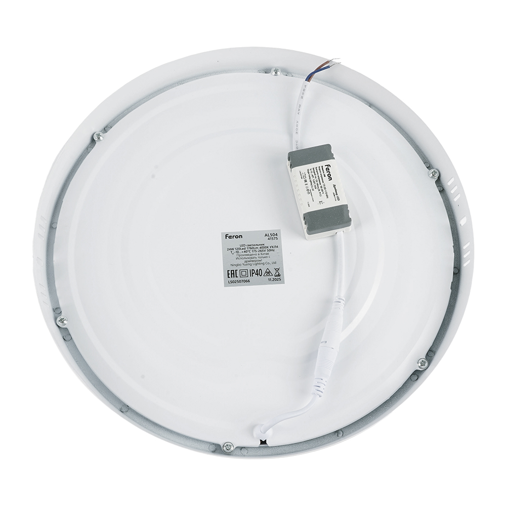 Светильник накладной светодиодный, потолочный (ДПО) FERON AL504, 24W, 4000К (белый), 175-265V, 1760Lm, IP40, угол рассеивания 120°, цвет белый, корпус алюминий, рассеиватель матовый акриловый полимер, 285*285*24