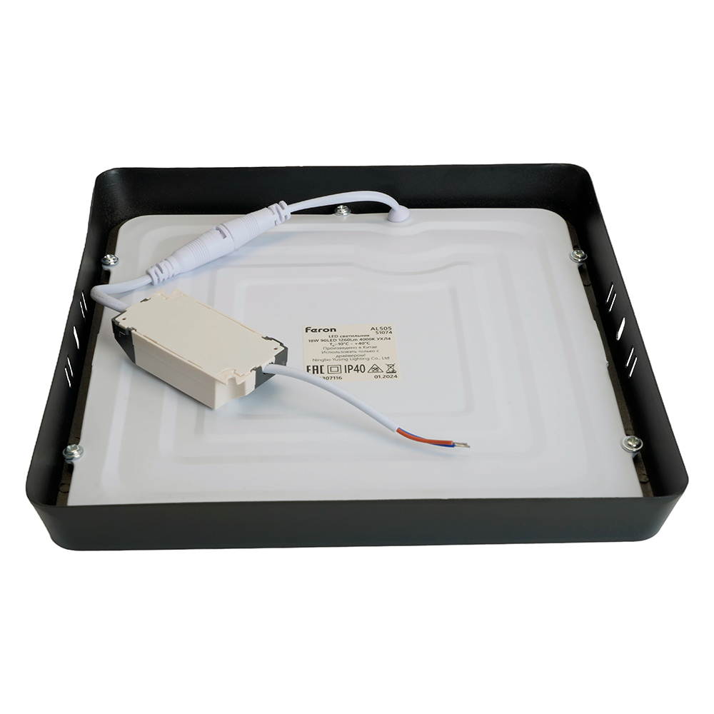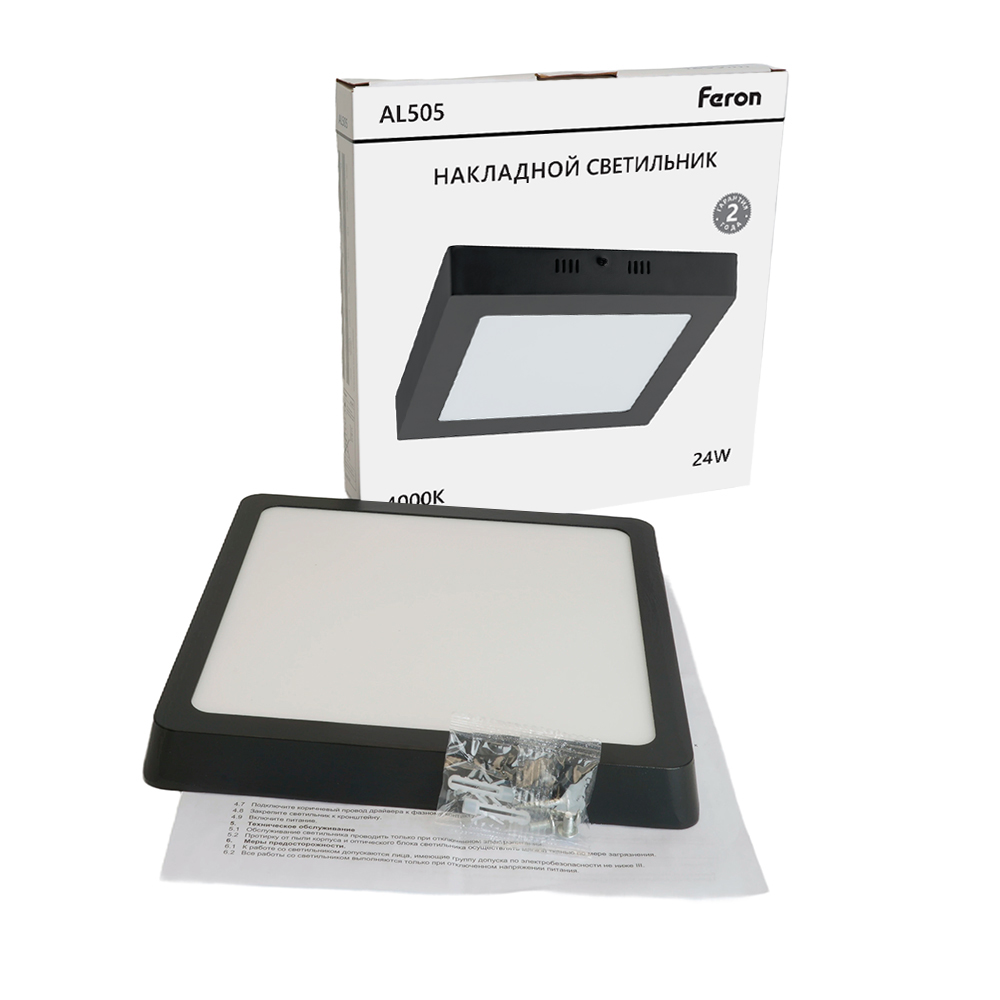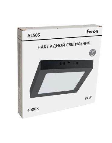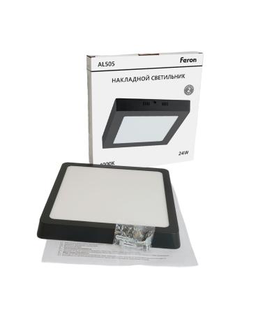 Светильник накладной светодиодный, потолочный (ДПО) FERON AL505, 24W, 4000К (белый), 175-265V, 1760Lm, IP40, угол рассеивания 120°, цвет черный, корпус алюминий, рассеиватель матовый акриловый полимер, 284*284*24