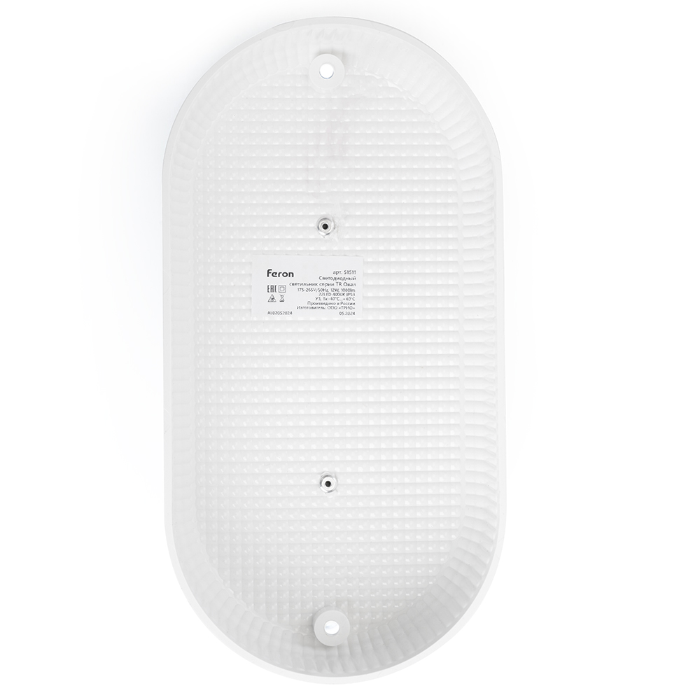 Светильник накладной светодиодный, пылевлагозащищённый (ДПБ) FERON Светодиодный светильник серии TR ЖКХ Овал 12Вт, 4000К, призма, IP53, 12W, 4000К (белый), 175-265V, 1080Lm, IP53, угол рассеивания 120°, цвет белый, корпус пластик ABS, рассеиватель поликарбонат, 210*110*70