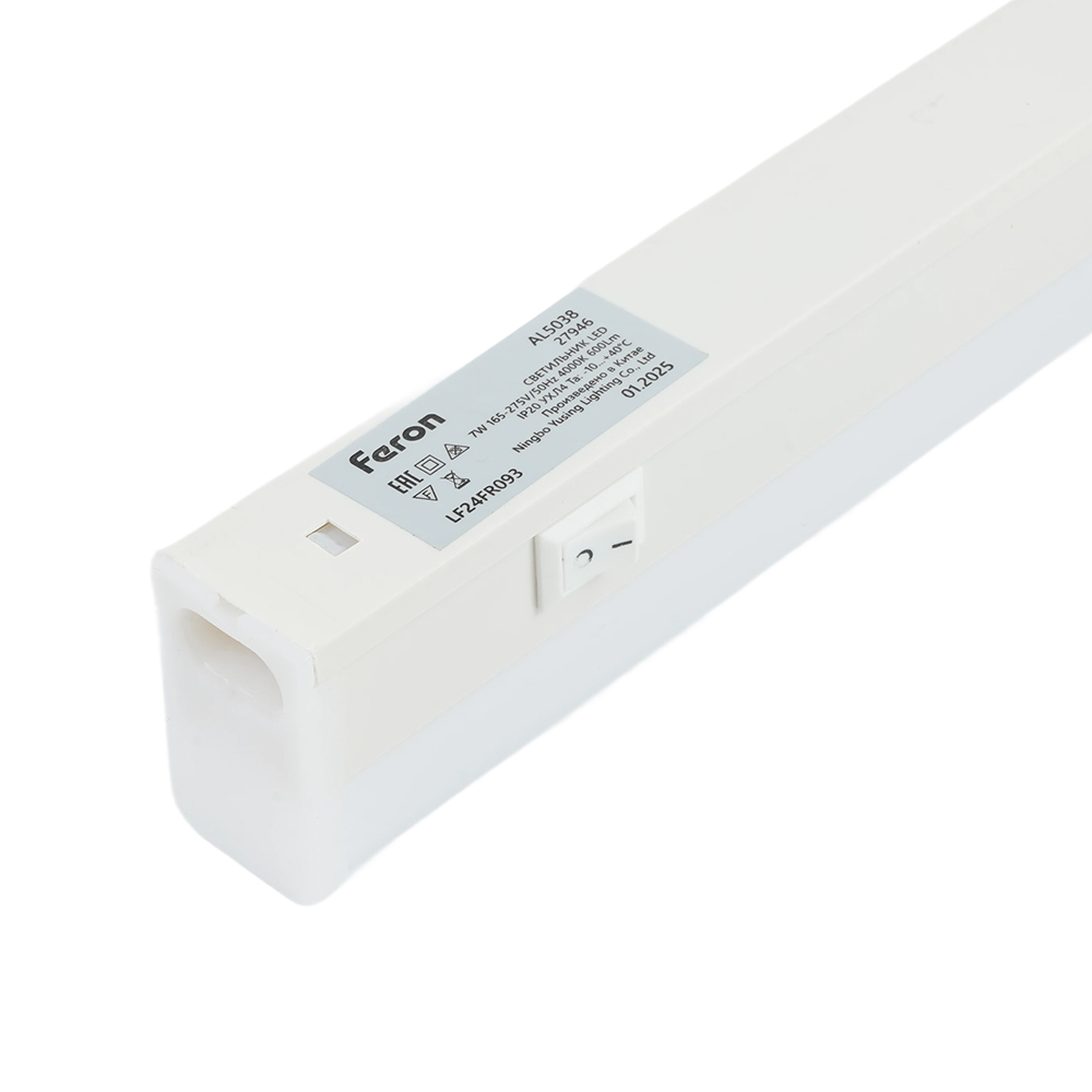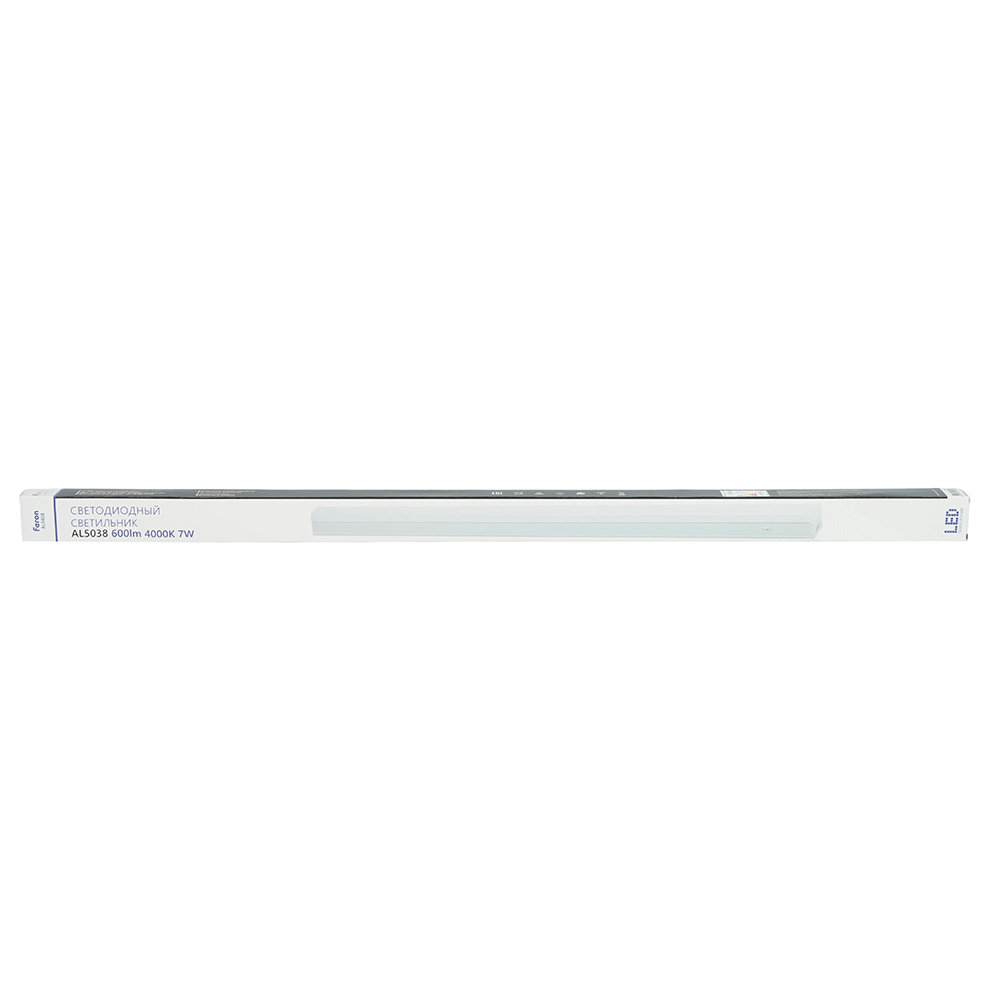 Светильник линейный светодиодный, с возможностью соединения в линию (ДПО) FERON AL5038, 7W, 4000К (белый), 165-275V, 600Lm, IP20, цвет белый, корпус пластик, рассеиватель пластик PC, 570*23*35 мм