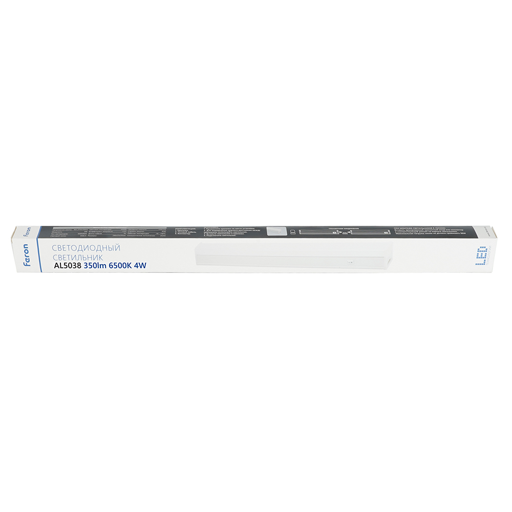 Светильник линейный светодиодный, с возможностью соединения в линию (ДПО) FERON AL5038, 4W, 6500К (дневной), 165-275V, 350Lm, IP20, цвет белый, корпус пластик, рассеиватель пластик PC, 270*22*35 мм