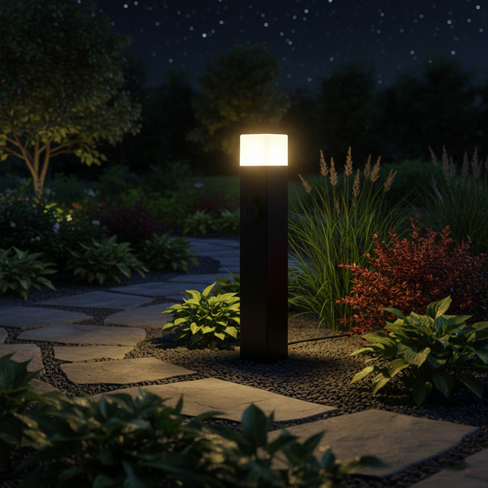 Светильник садово-парковый, серии «Берлин», (НТУ) FERON DH0205 15W, E27, 230V, IP44, цвет черный, цилиндр, столб, 80*80*450мм