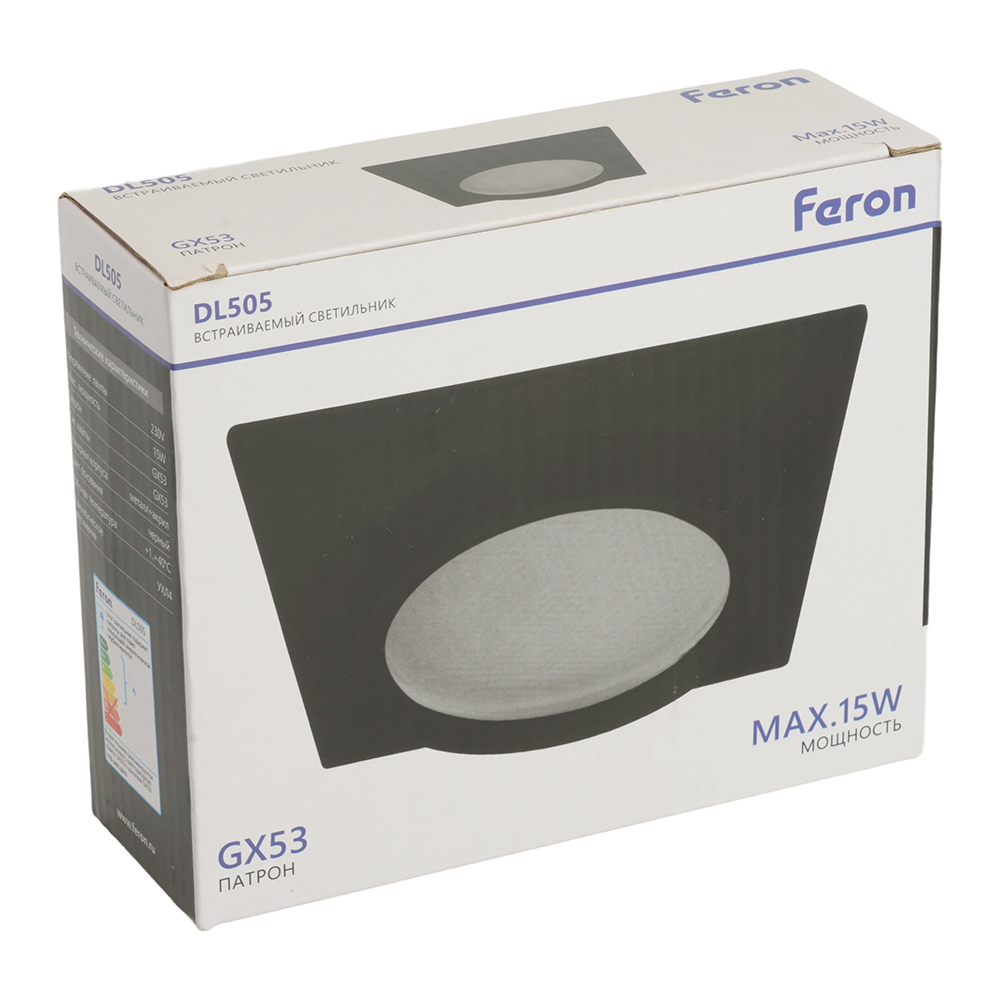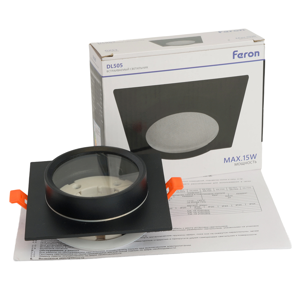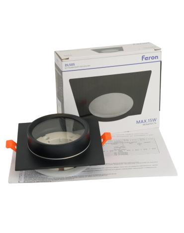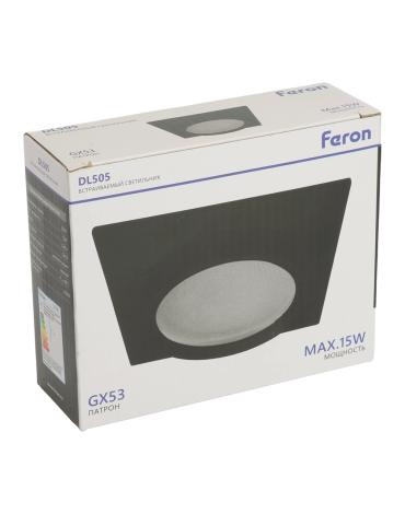 Светильник потолочный встраиваемый (ФВО) FERON DL505, под лампу GX53 GX53, черный, квадрат, 110*110*42 мм, монтажный диаметр 90мм, корпус металл+стекло, неповоротный