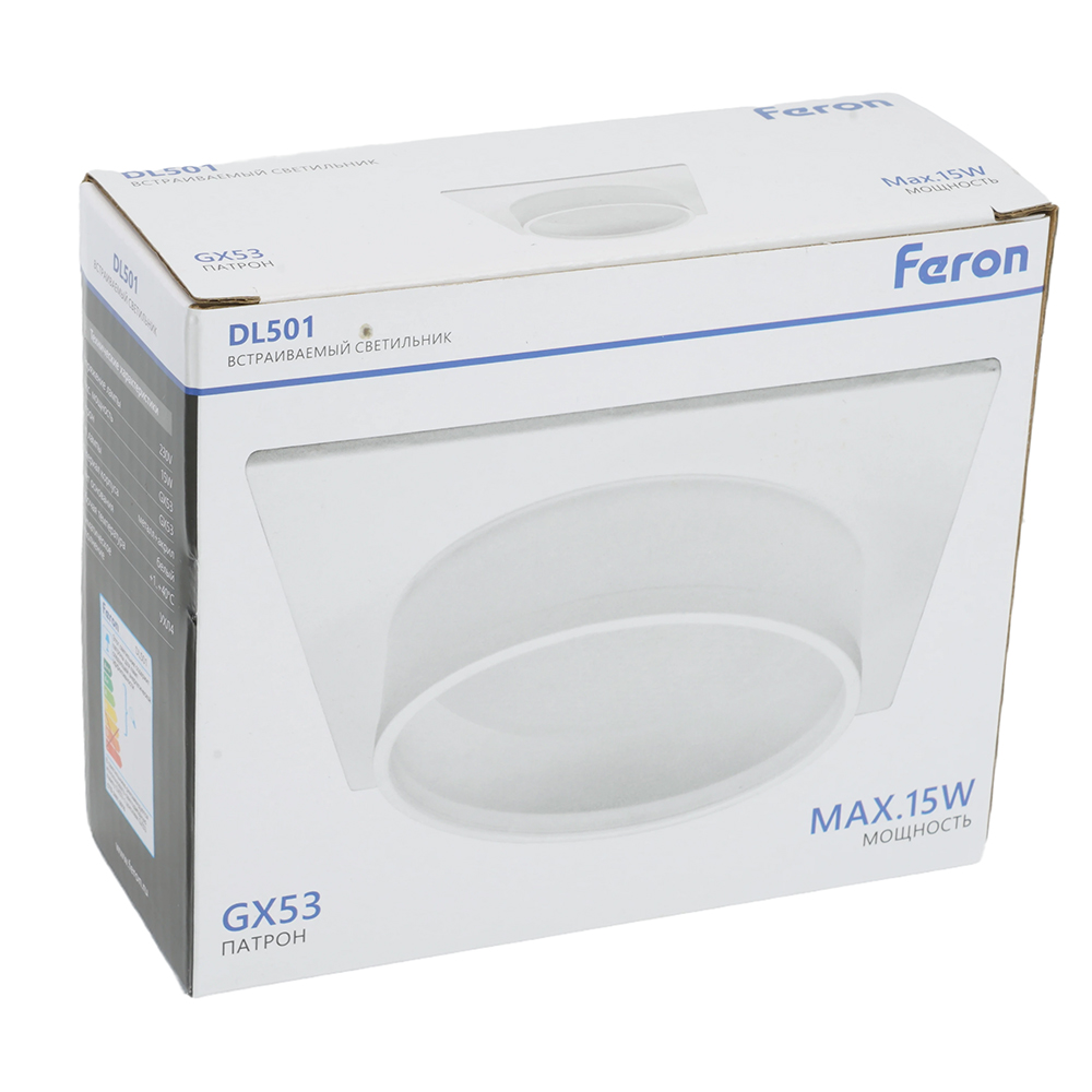 Светильник встраиваемый Feron DL501 потолочный GX53 белый квадрат
