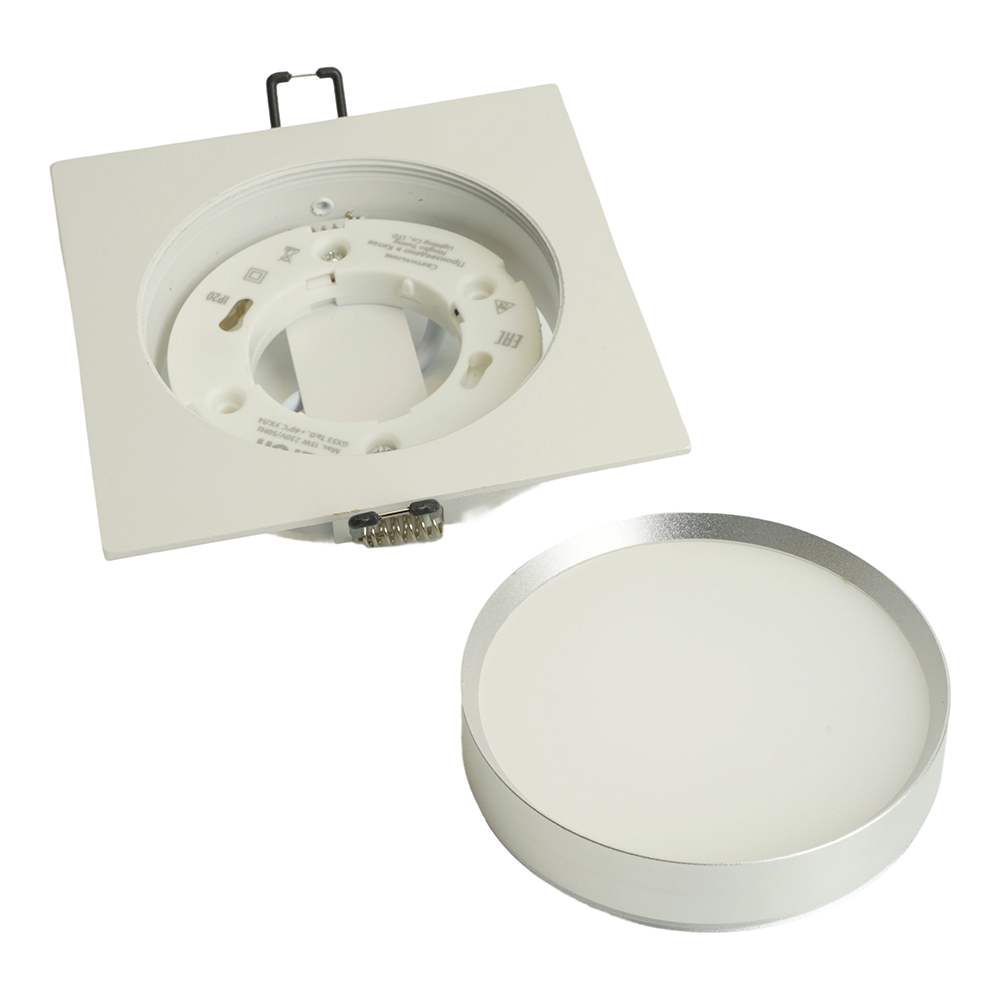 Светильник потолочный встраиваемый (ФВО) FERON DL506, под лампу GX53 GX53, белый+серебро, квадрат, 110*110*40 мм, монтажный диаметр 90мм, корпус металл+акрил, неповоротный