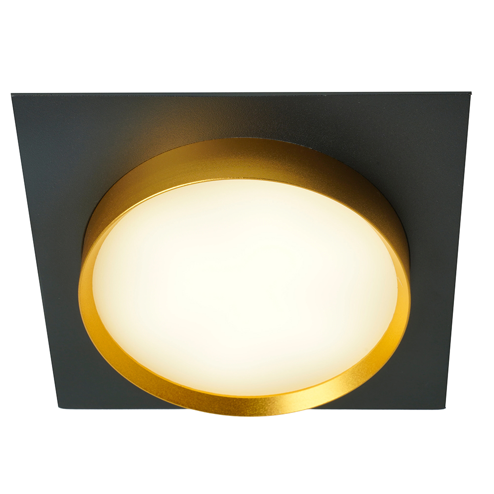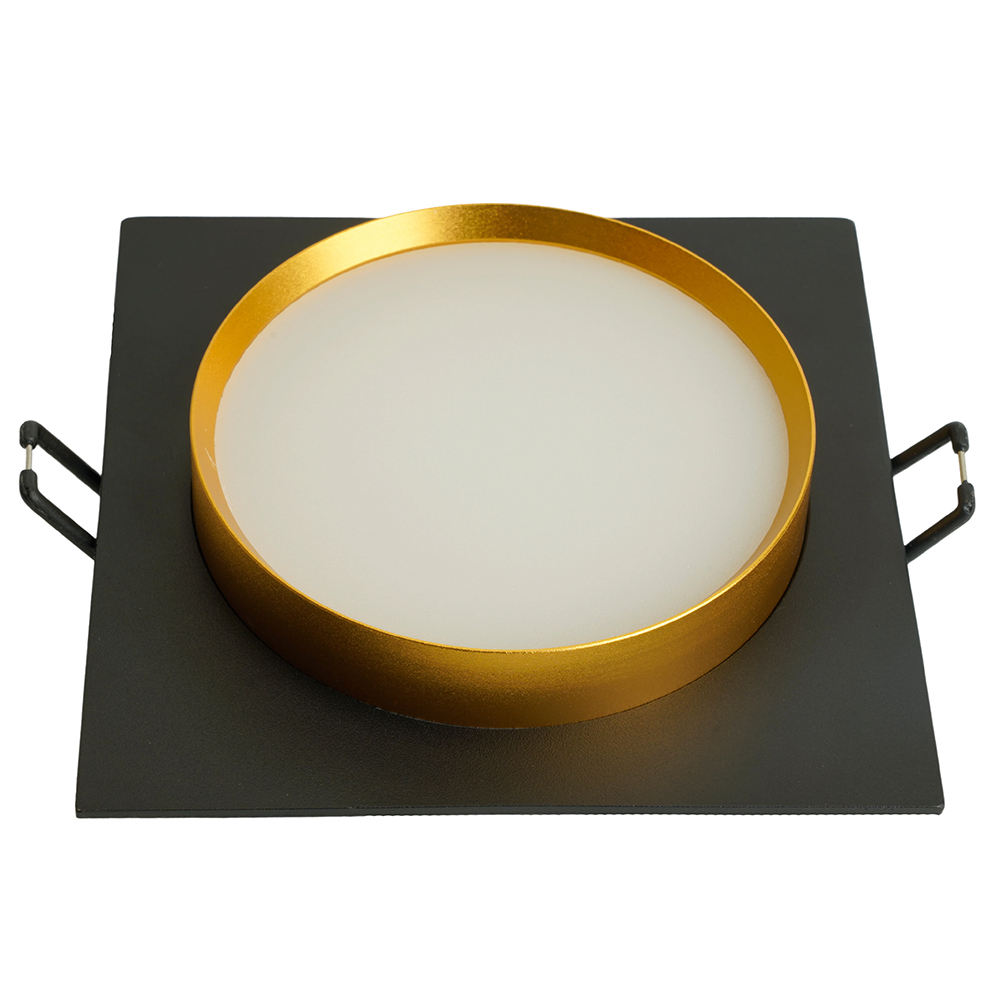 Светильник потолочный встраиваемый (ФВО) FERON DL506, под лампу GX53 GX53, черный+золото, квадрат, 110*110*40 мм, монтажный диаметр 90мм, корпус металл+акрил, неповоротный