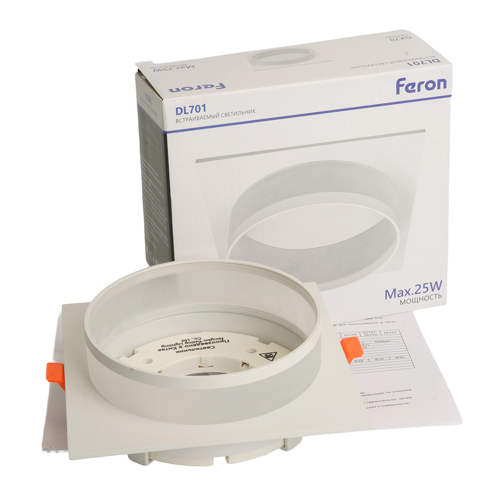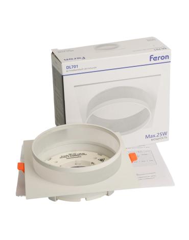 Светильник потолочный встраиваемый (ФВО) FERON DL701, под лампу GX70 GX70, белый, квадрат, 140*140*55 мм, монтажный диаметр 125мм, корпус металл+акрил, неповоротный