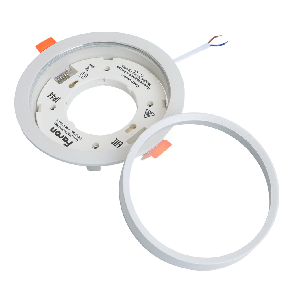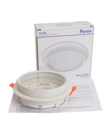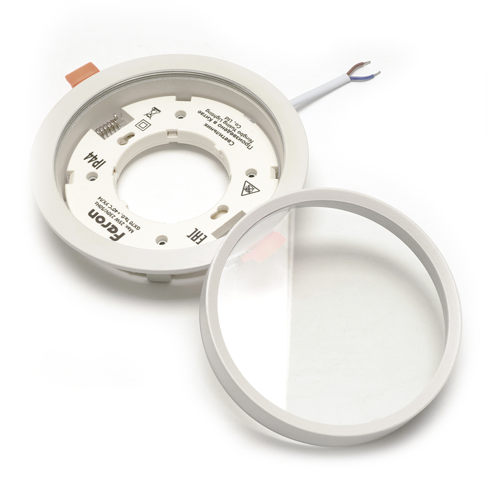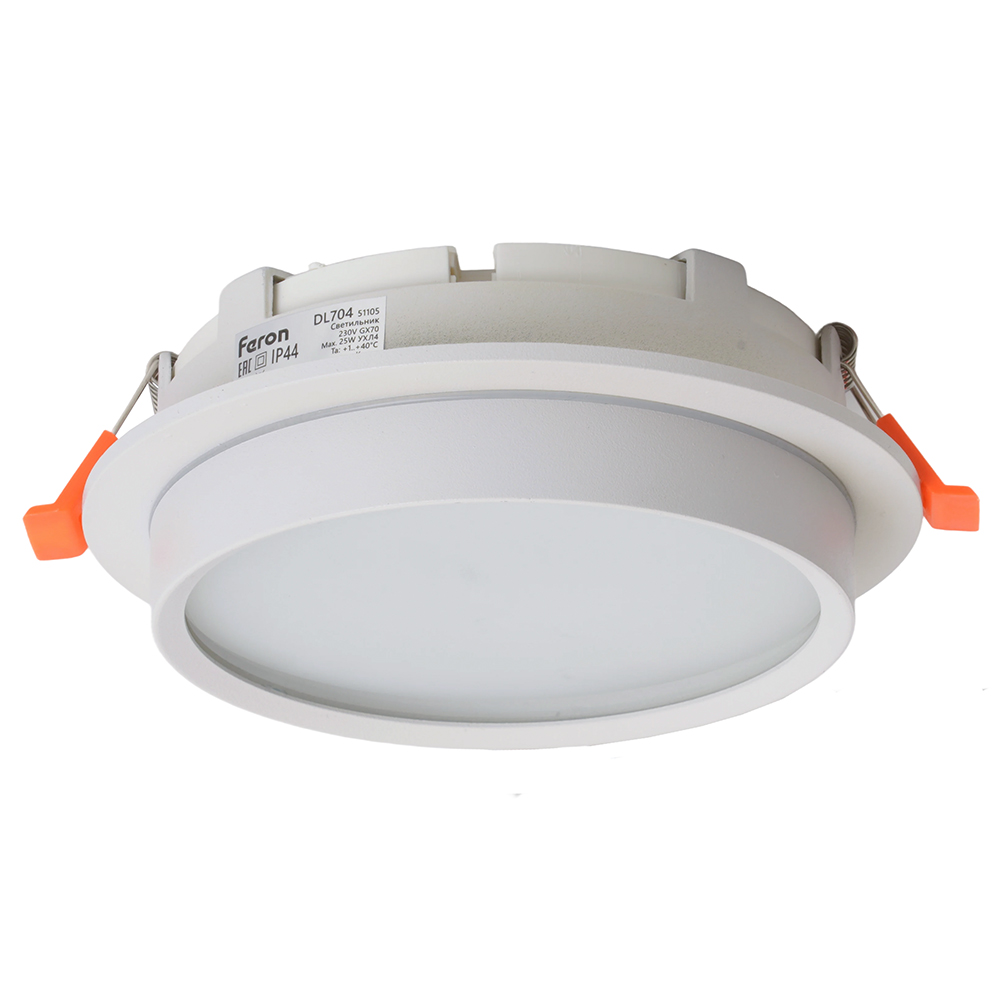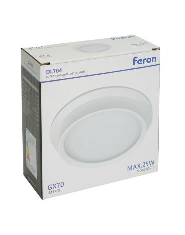 Светильник потолочный встраиваемый (ФВО) FERON DL704, под лампу GX70 GX70, белый, круг, 140*140*46 мм, монтажный диаметр 125мм, корпус металл+акрил, неповоротный